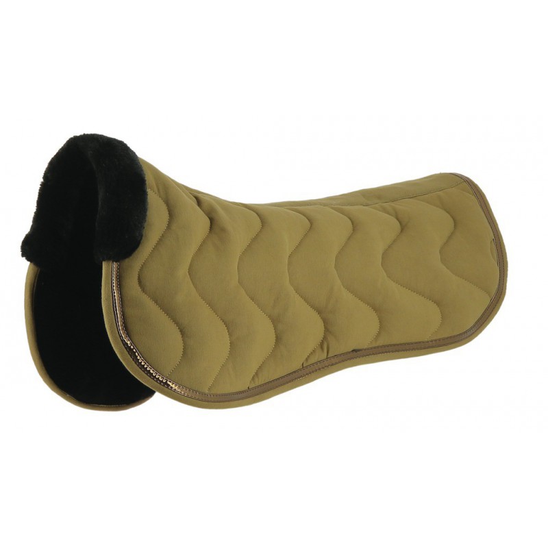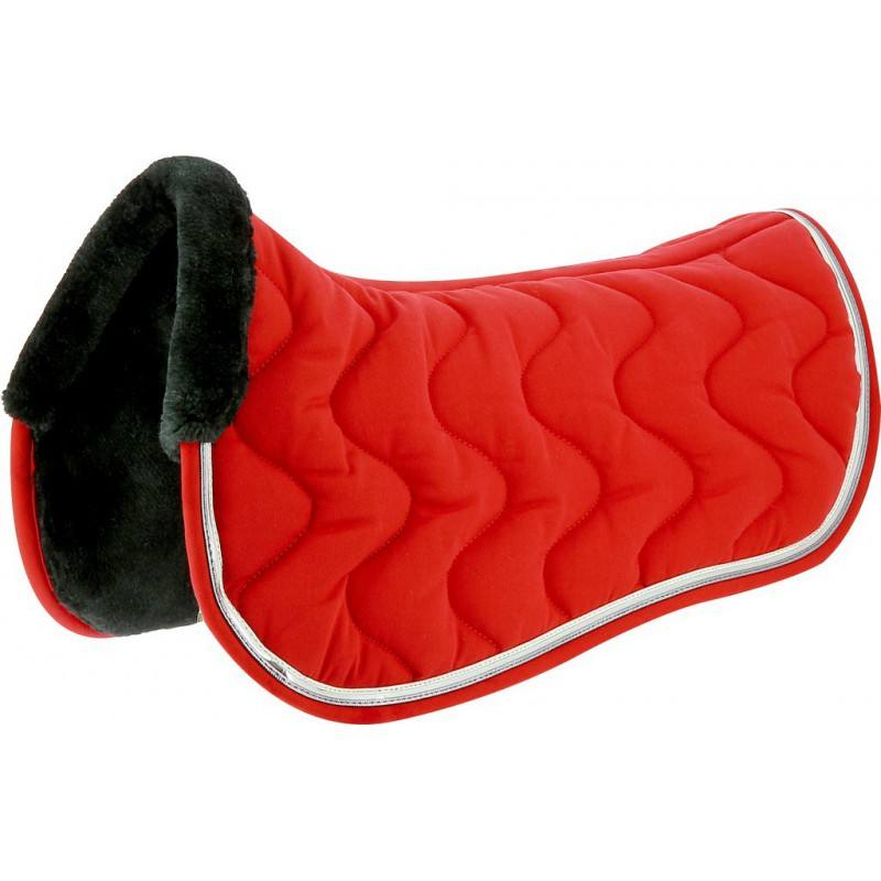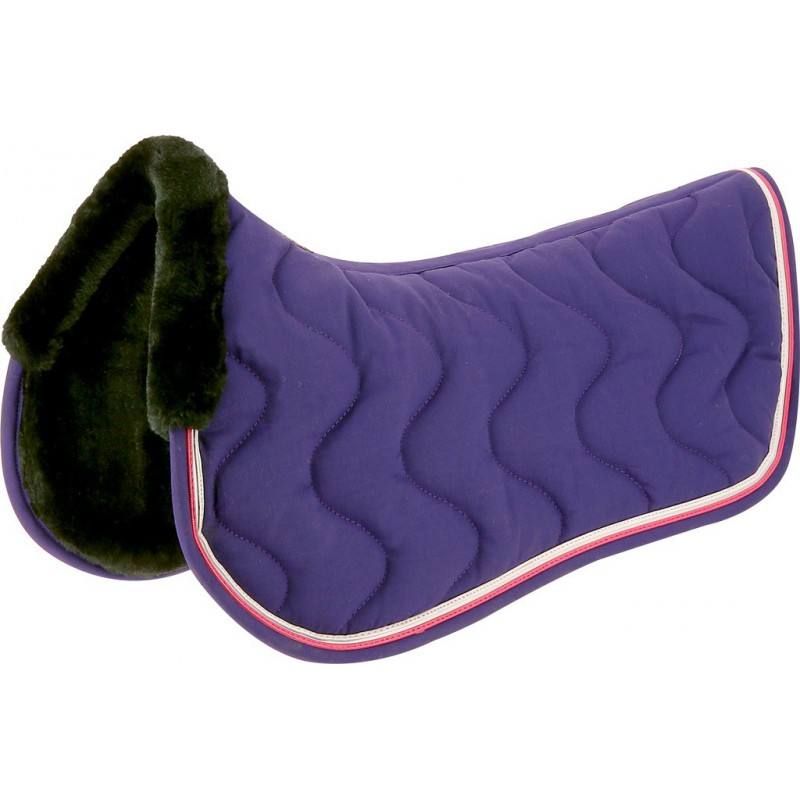 L’amortisseur de dos EQUITHÈME « Jump » est agrémenté de surpiqûres « vagues », d’un liseré orné d’un passepoil plat brillant avec protection de garrot mouton synthétique.