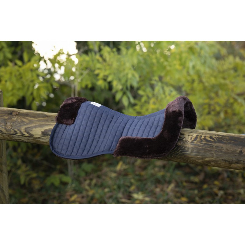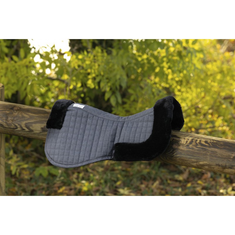 Amortisseur de dos avec surpiqûres à petit carreaux. Matelassage, protection de garrot et renfort à l’arrière en mouton synthétique haute densité.