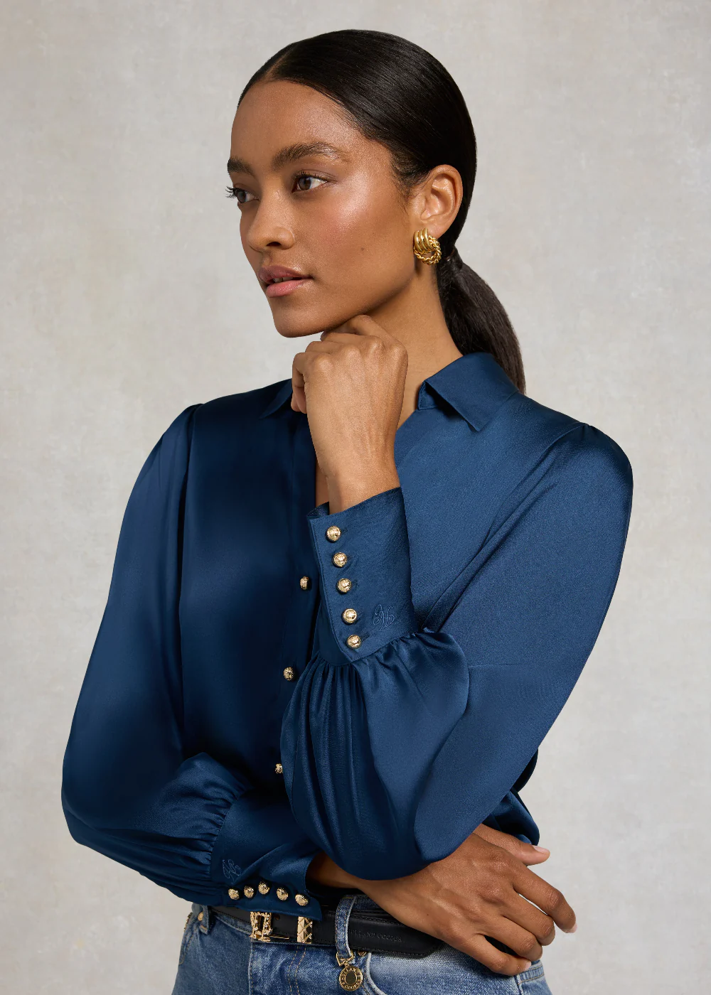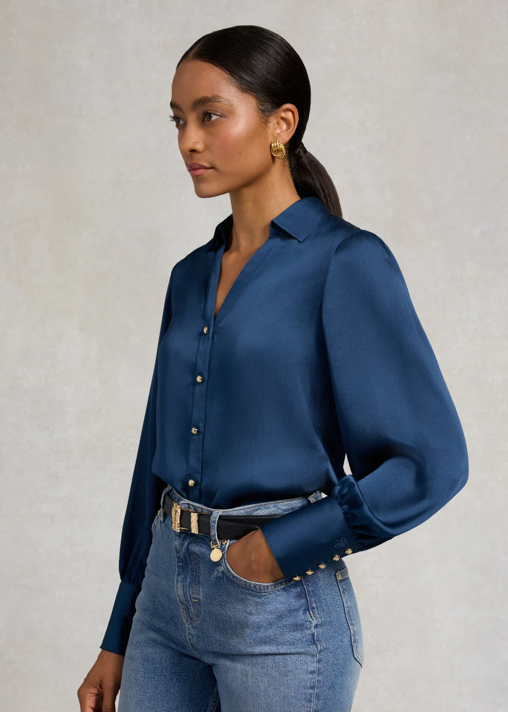 Key Features 100% Polyester V-neck collar Full gathered sleeves Classic button down V-shaped back yoke Signature gold HC pin Monogram Holland Cooper embroidery to chest True to size Care InstructionsPlease refer to care label Code31200225106805