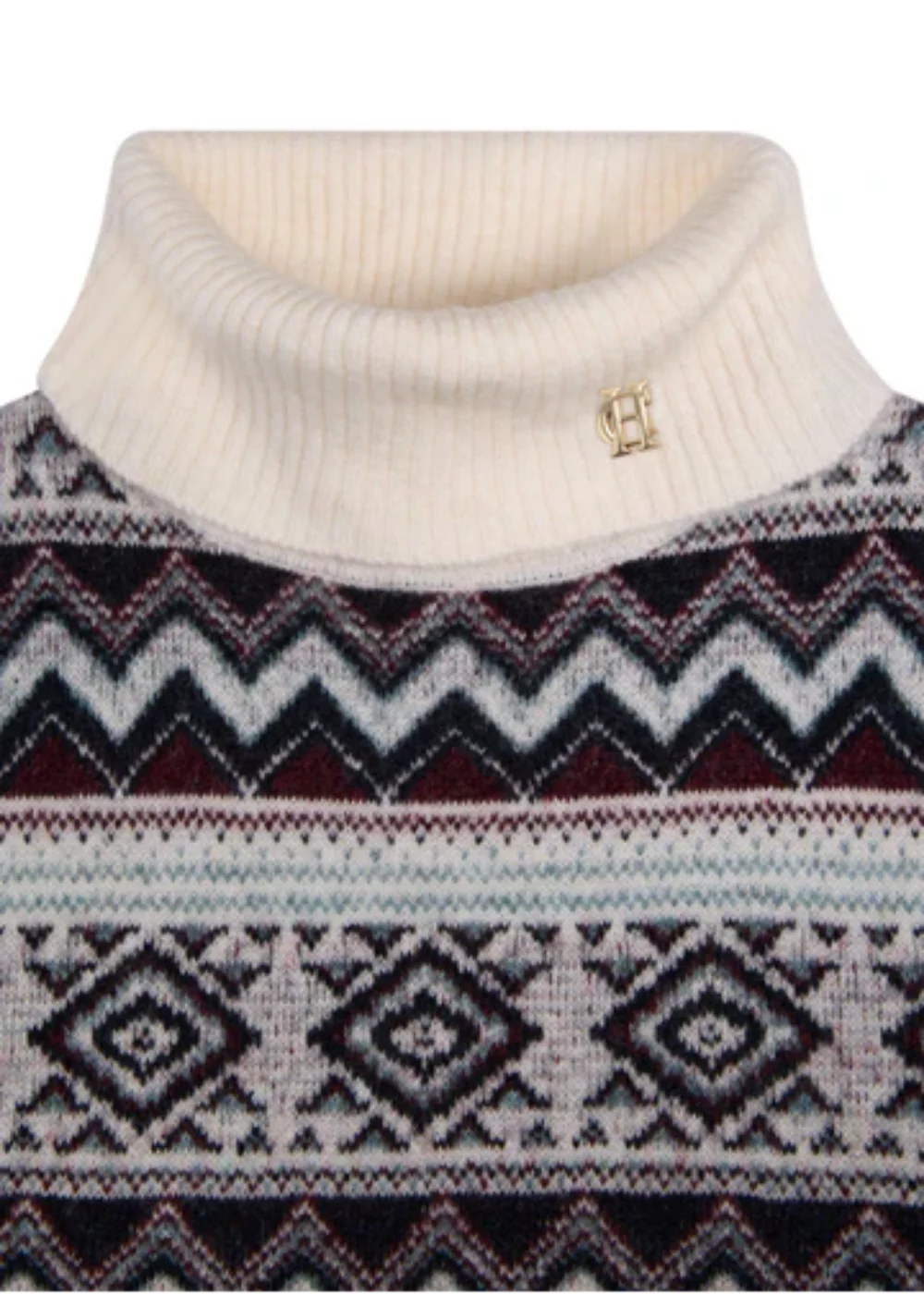 Key Features 47% Nylon, 18% Mohair, 18% Wool, 15% Acrylic, 2% Spandex Fairisle pattern to body Roll neck with stepped hem HC plaque detailing to neck Wide rib cuffs and hem Relaxed fit Care InstructionsPlease refer to care label Code21100225205679