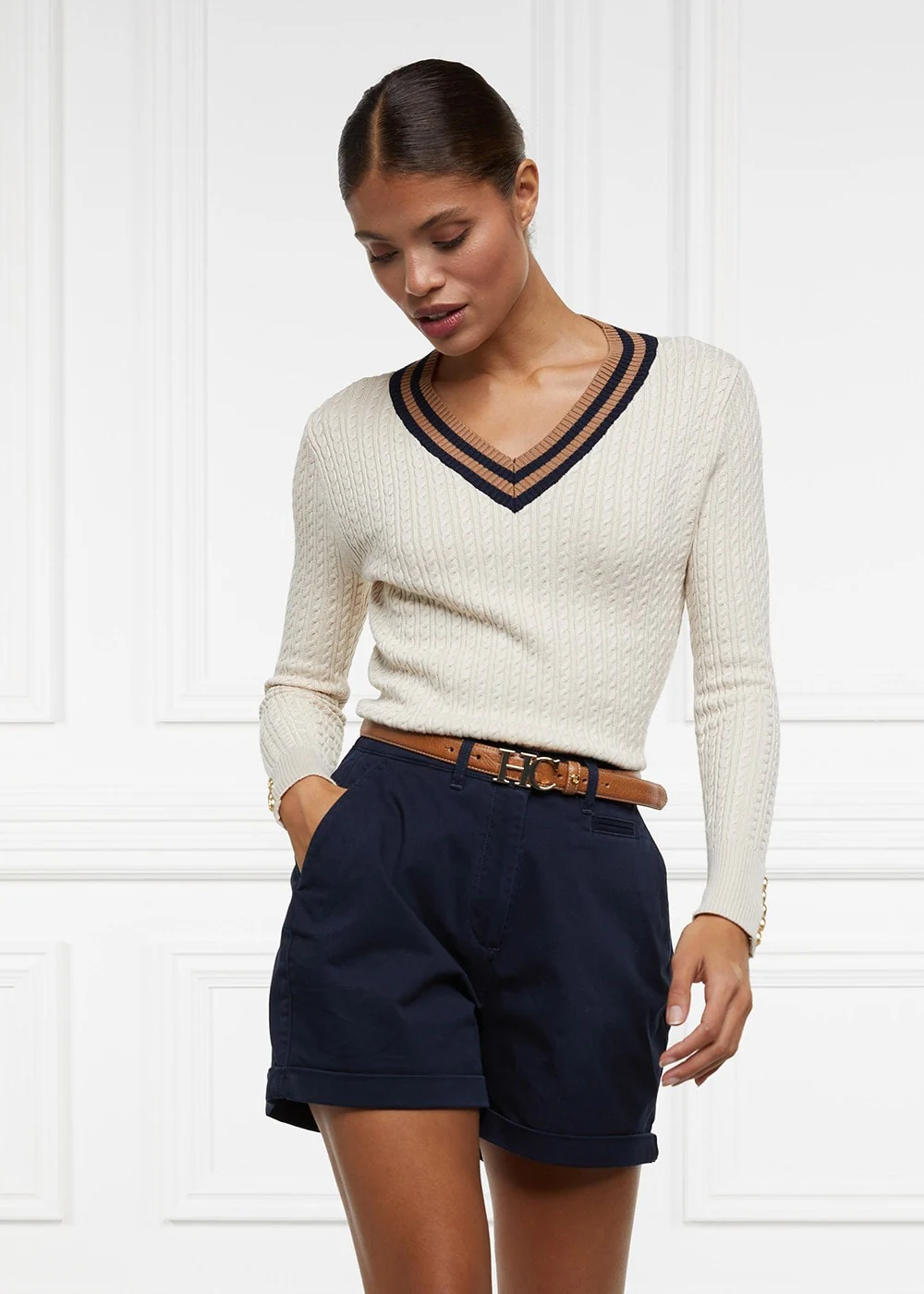 Key Features 97% Cotton/3% Elastane Mid rise waist Printed internal pockets Belt loops Mini ticket pocket Mock horn buttons Gold hardware Why Customers love this Brushed cotton fabric with bit of stretch Flattering mid-rise waist Lovely paired with a striped HC crew neck t-shirt Styling your Arnesby Chino ShortStyle your Arnesby Chino Short with a […]
