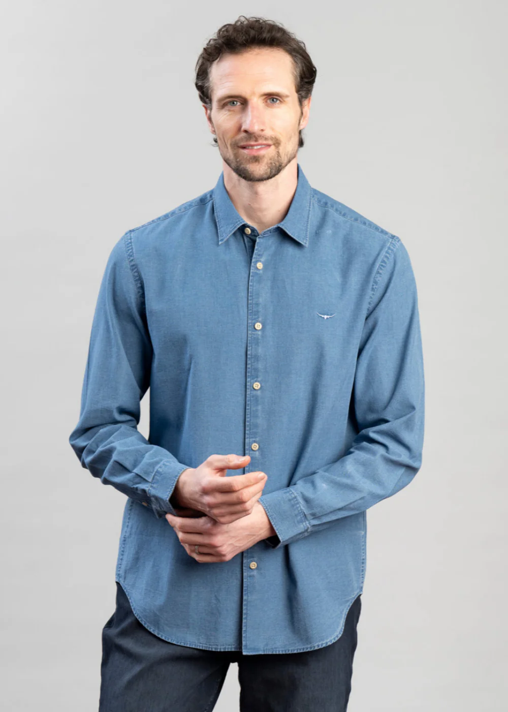 Key Features 100% cotton Regular fit Regular collar with French placket Centre back yoke Tonal Longhorn embroidery at chest Curved hem CodeSH200CD02