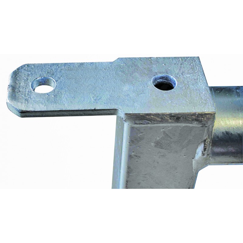 – Plat de fixation de partie arrière de barrière emboutie Embout avant un verrou “embouti” Ø25 mm, anti-retour dans l’axe des lisses.