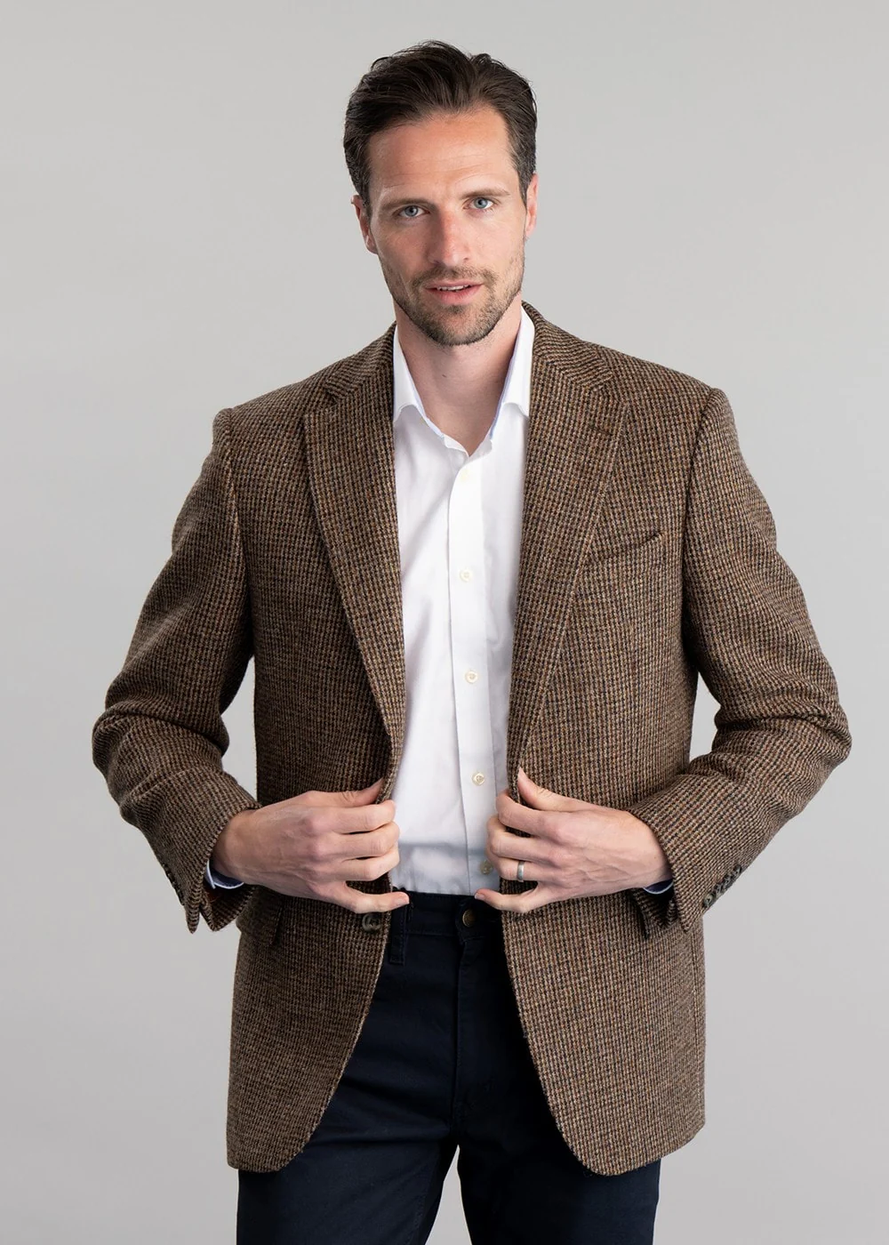 Key Features 100% Wool 430g weight Single breasted Welted pocket to chest 2 lower straight flap pockets Internal phone pocket 2 button closure Horn buttons 4 button detail on cuff Double vents Regular and long fittings Fit GuidancePlease refer to our Size Guide for more detailed measurements. Product CareDry Clean only Sizing Availability38-48″ Ask us […]