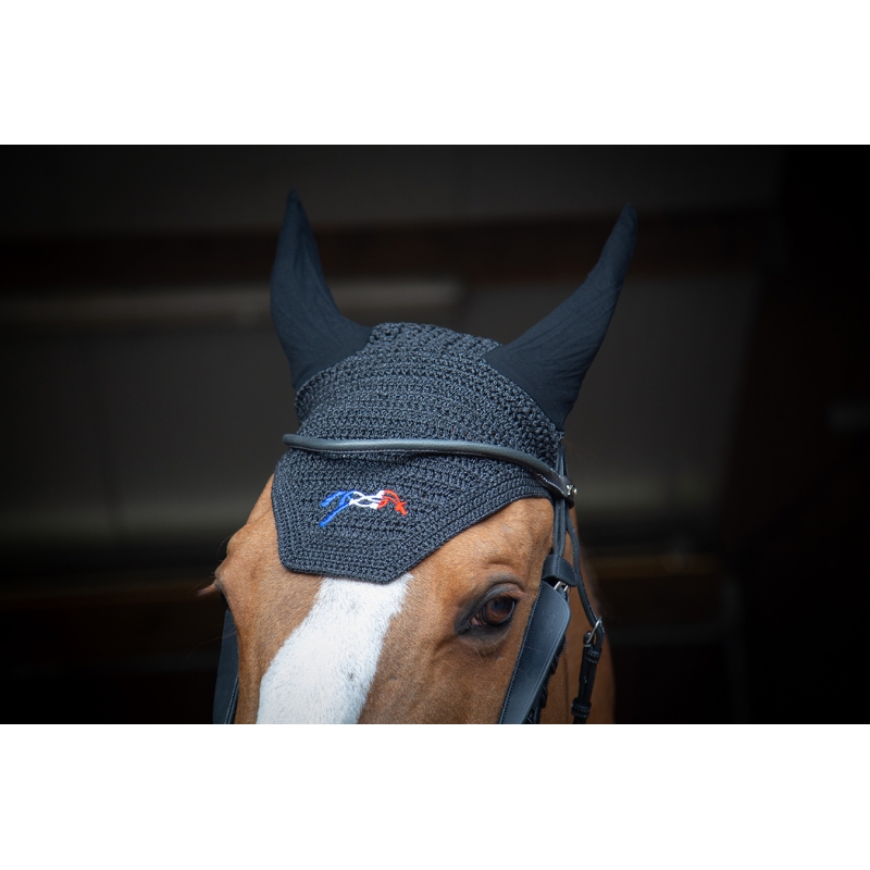 En plus d’apporter une touche esthétique indéniable, ce bonnet permet d’isoler le cheval d’éventuels mouches, insectes, intempéries et des bruits extérieurs.