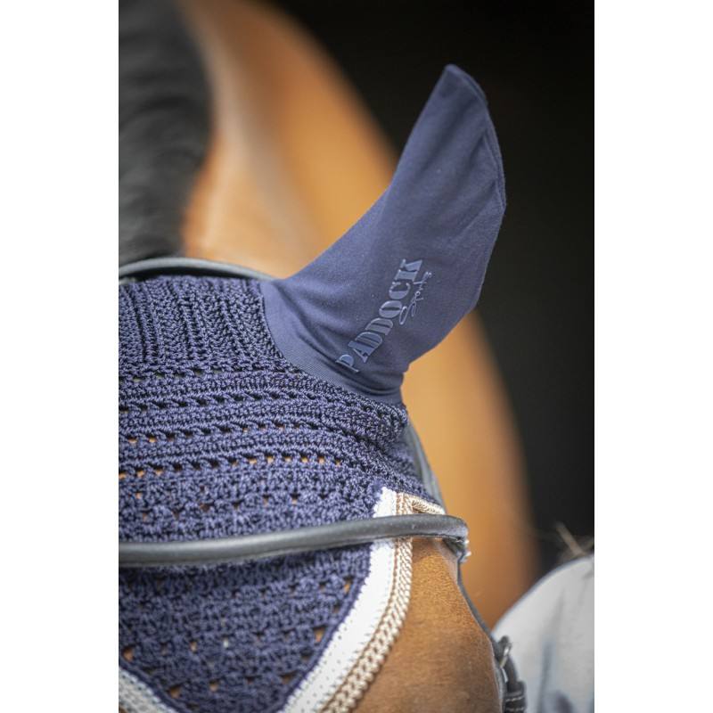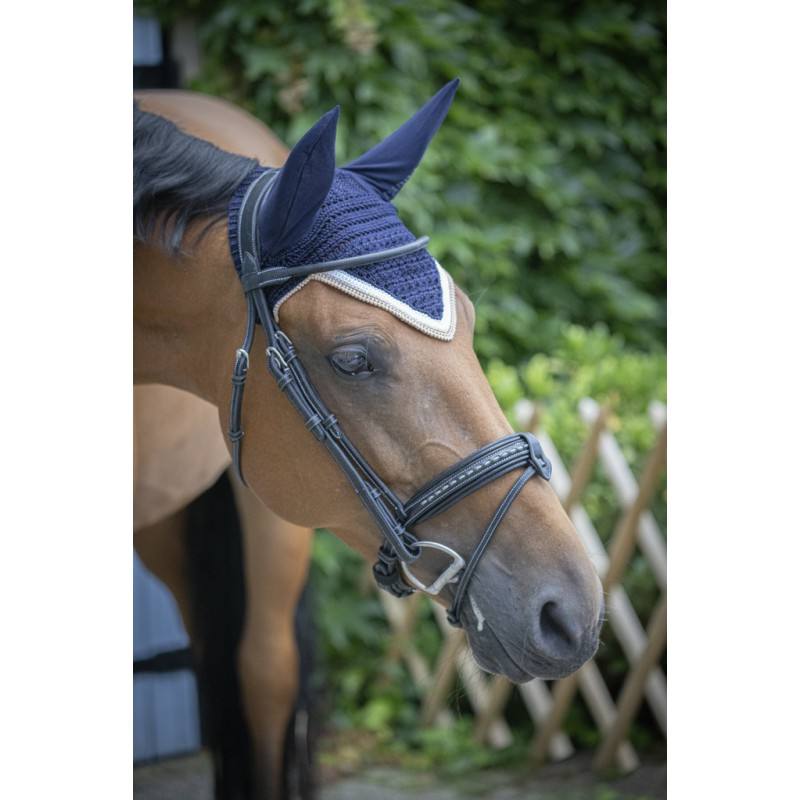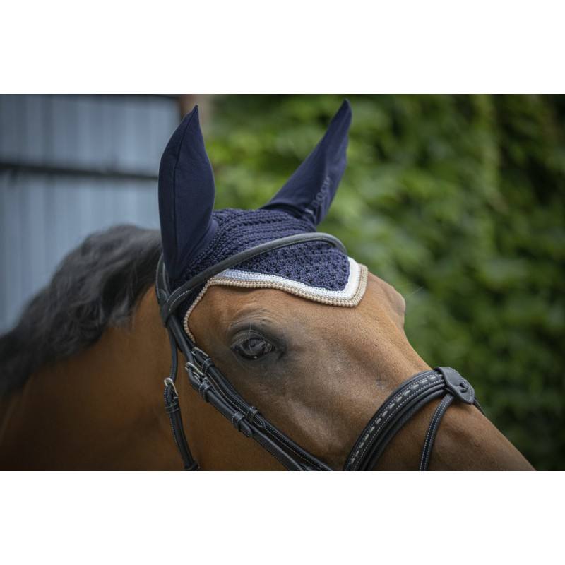 Tissage assez épais qui se pose parfaitement sur la tête du cheval. Jolie coupe en V. Oreilles stretch pour s’adapter à toutes les morphologies.