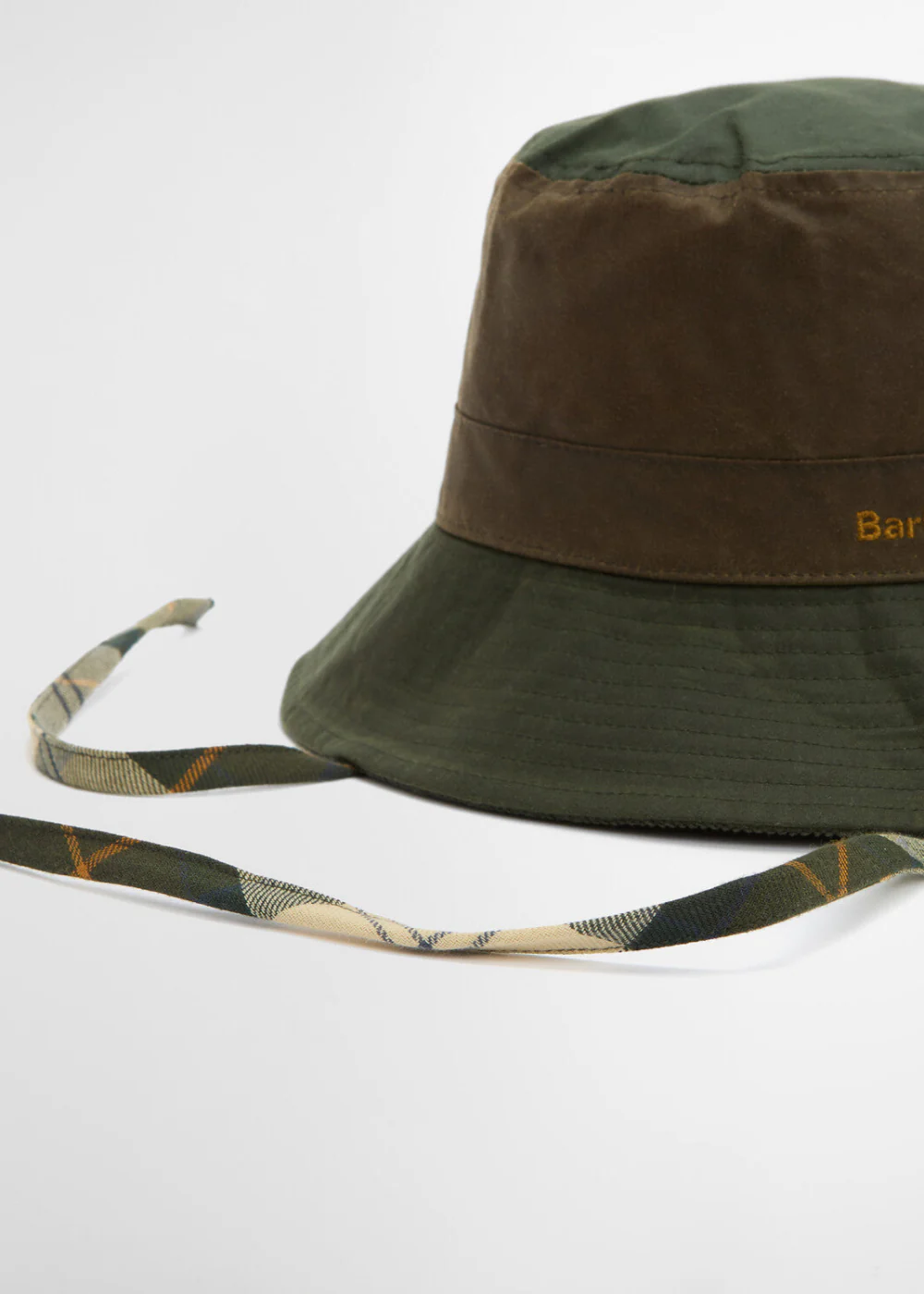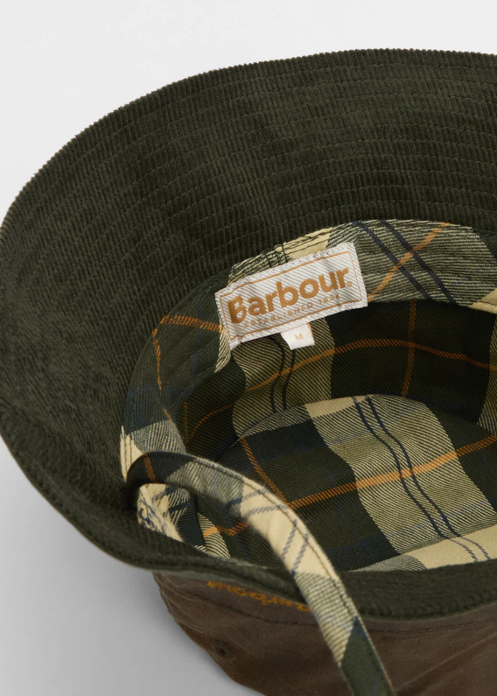 Key Features Main Outer: 100% Cotton (Waxed) Lining: 100% Cotton Water-resistant Barbour logo embroidery to wearer’s left hand side. Oversized brim Cord trim under brim Tartan lined Tartan fabric ties Fit GuidancePlease refer to our Size Guide for more detailed measurements. Product CareSponge clean only CodeLHA0548OL52