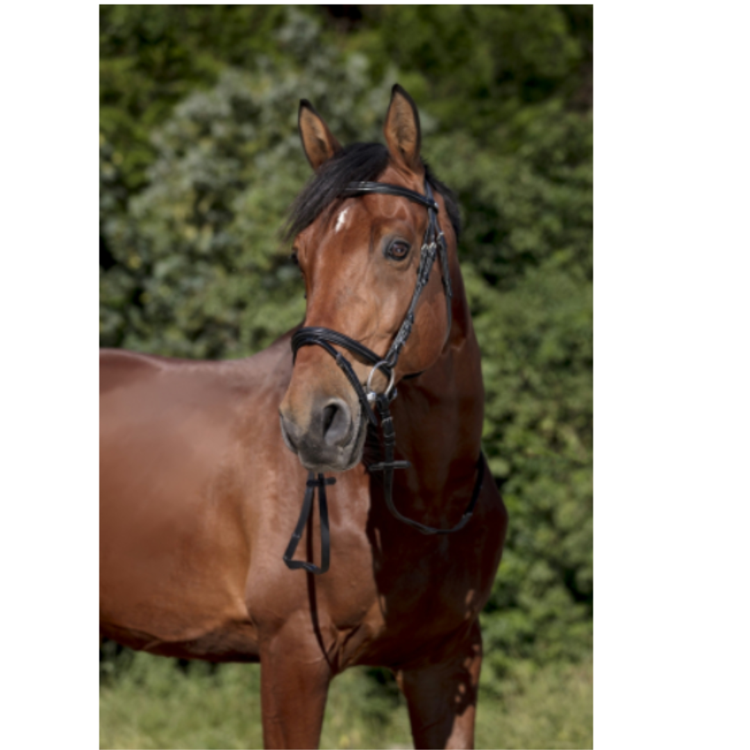 Frontal et muserole combinée bombés, surpiqués et doublés.