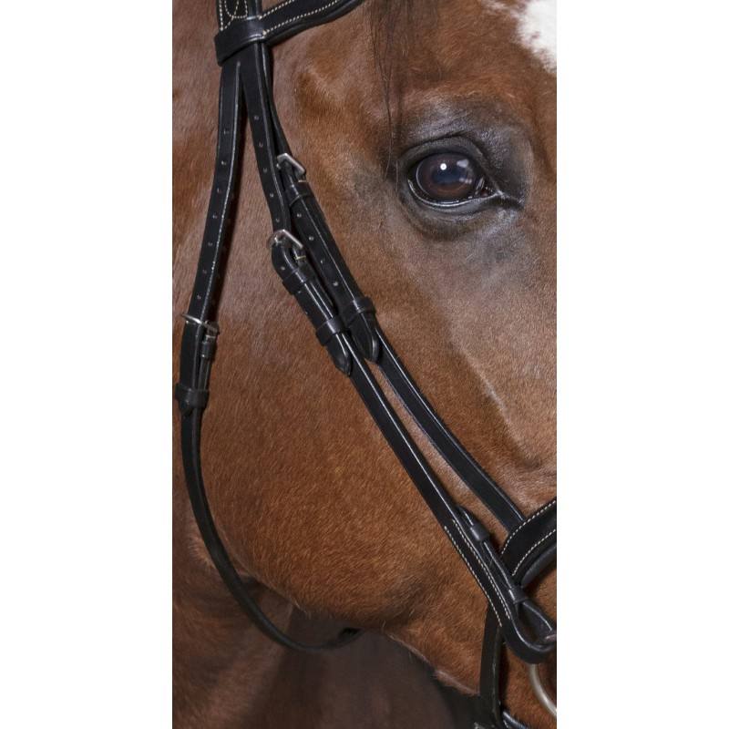 Bridon cuir de buffle. Têtière, frontal et muserolle doublées cuir vachette.