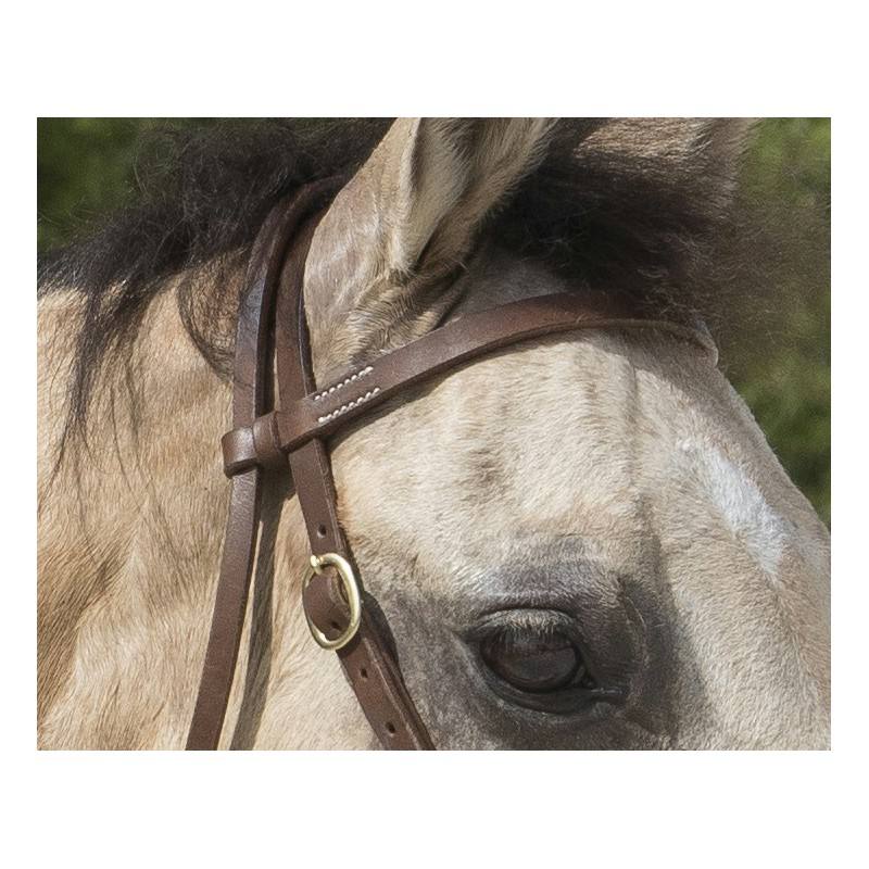 En cuir vachette avec frontal. Fermeture à nouer sur les montants et bouclerie en laiton. Vendu sans rênes.