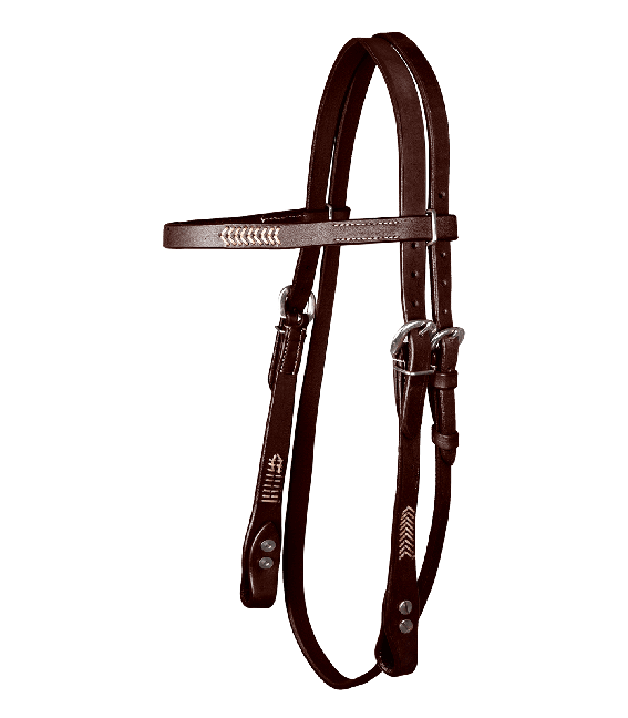 – Frontal réglable des deux côtés – Tressage peau brute au frontal et à la muserolle – Système Chicago double-vis – En cuir