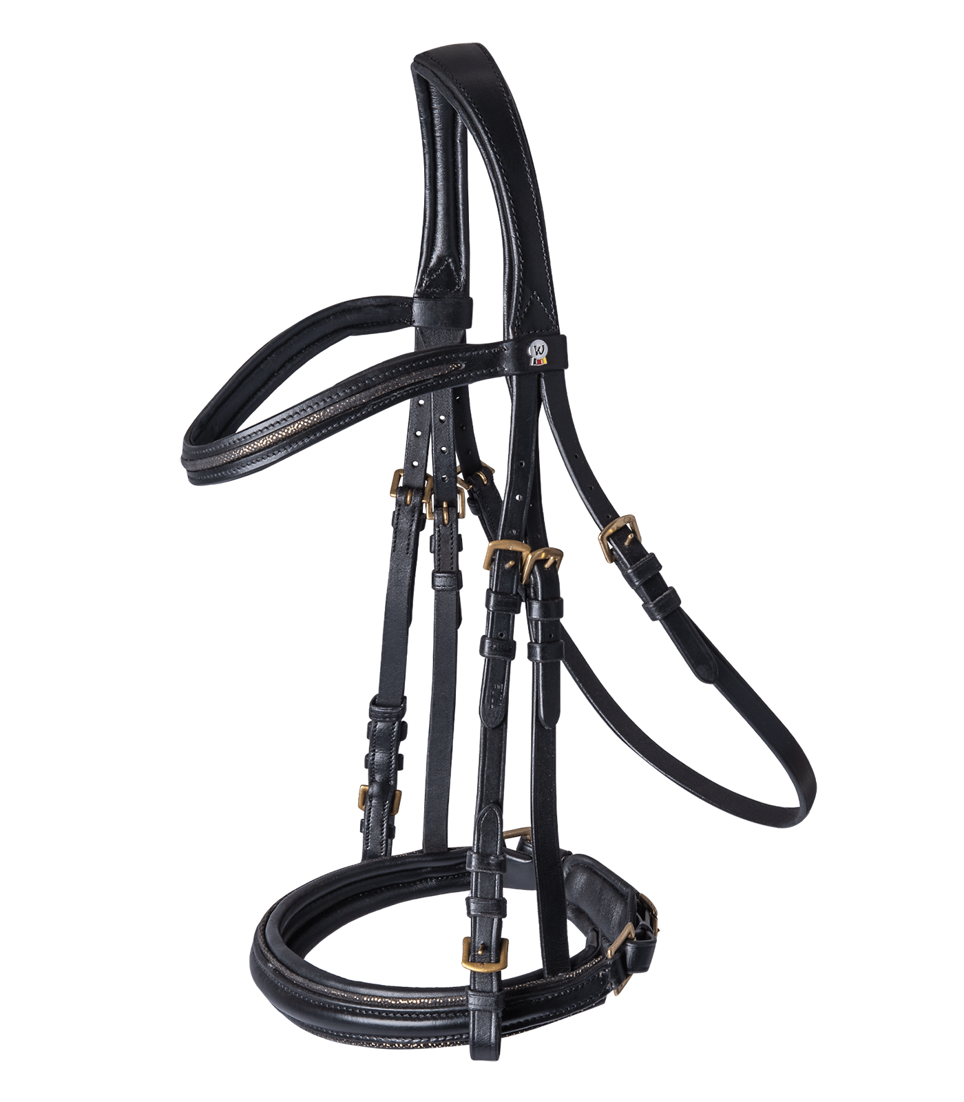 – Muserolle combinée pull back – Têtière de forme anatomique – Montants de muserolle et têtière extrêmement Souple – Frontal galbé