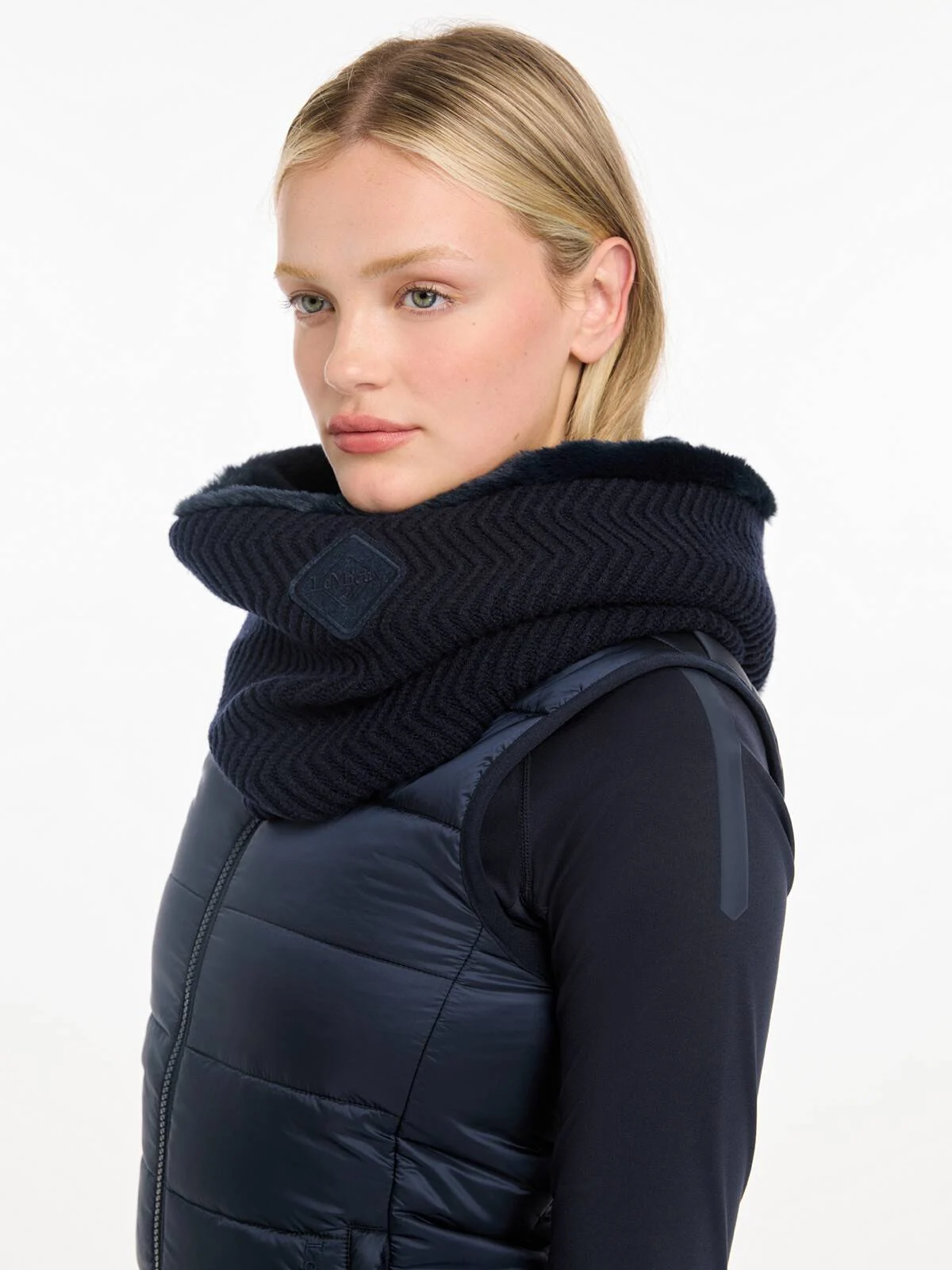 Restez au chaud par temps froid grâce à ce couvre-cou aux couleurs vives. Le motif en maille à chevrons apporte de la texture, tandis que la doublure chaude en fourrure synthétique protège des courants d’air froid.