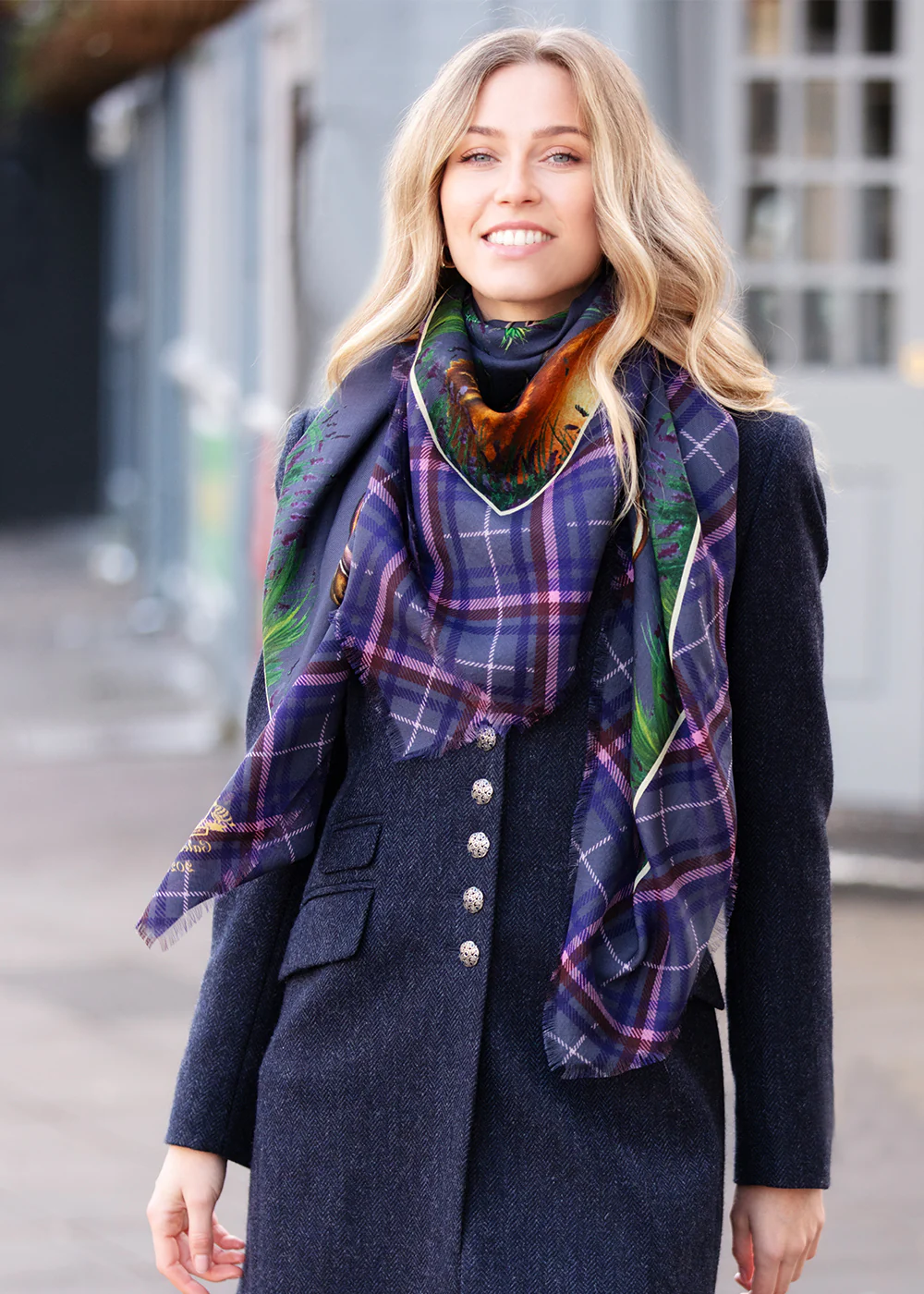 Key Features 100% Wool/Silk Caledonia design Shawl/wrap 134cm x 134cm Packaged in a branded box British Designed and Made Care InstructionsDry Clean Only CodeSHAWLCALSA