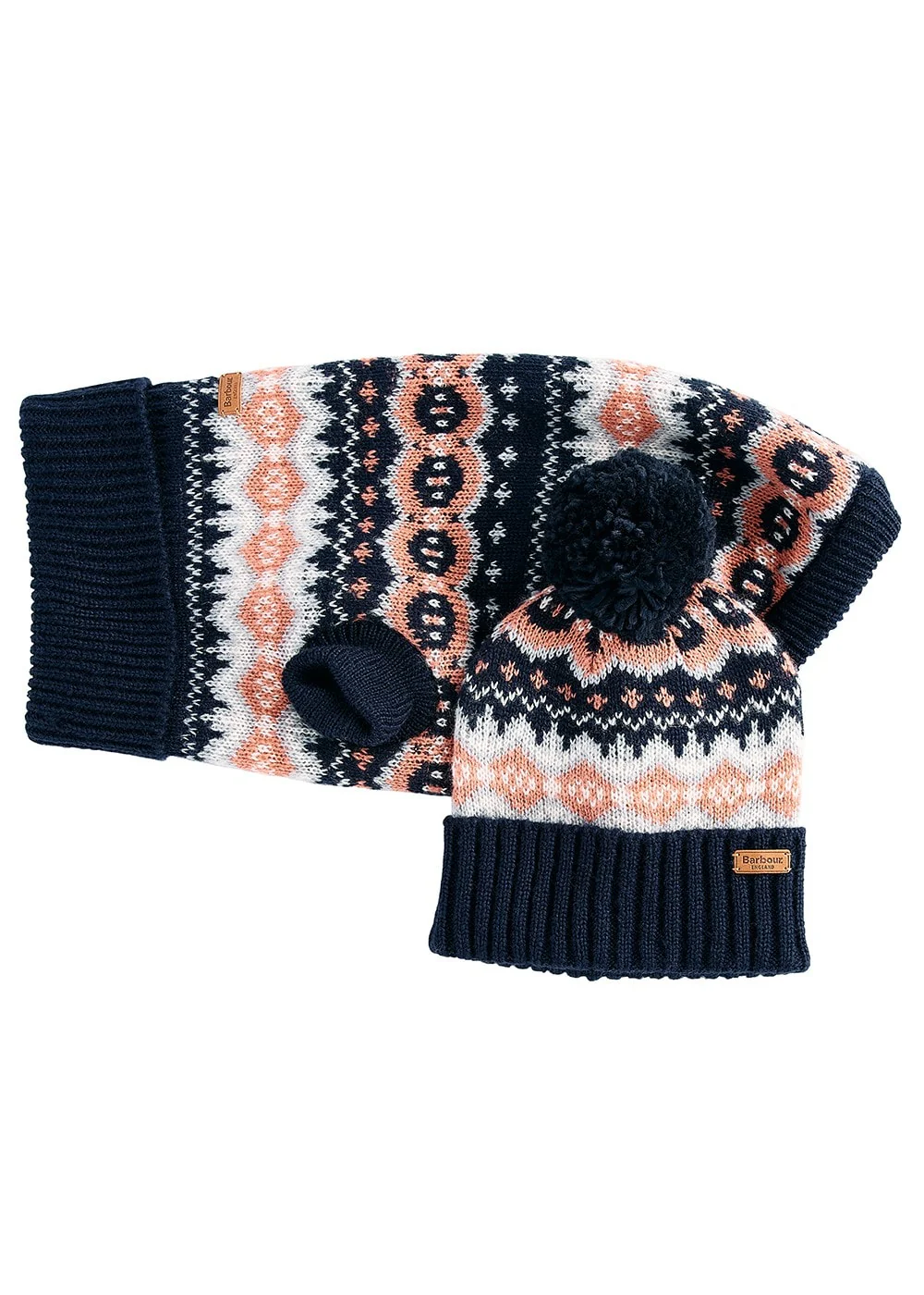 Key Features 100% Acrylic Set includes a dog jumper and owners hat Fairisle all-over design Barbour embossed badge on edge of hat hem and neck of jumper Hand wash 30°C CodeDAC0109