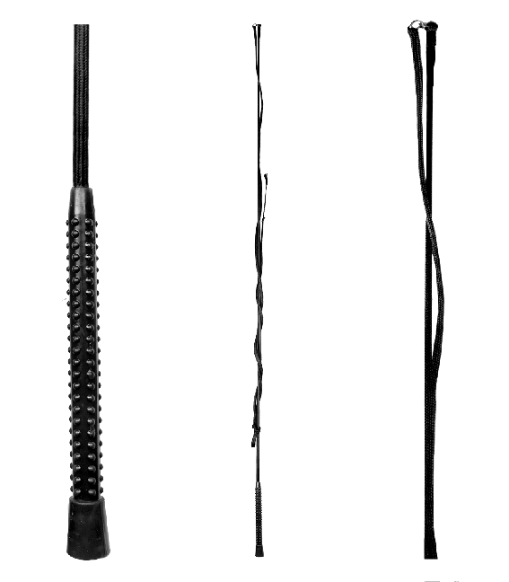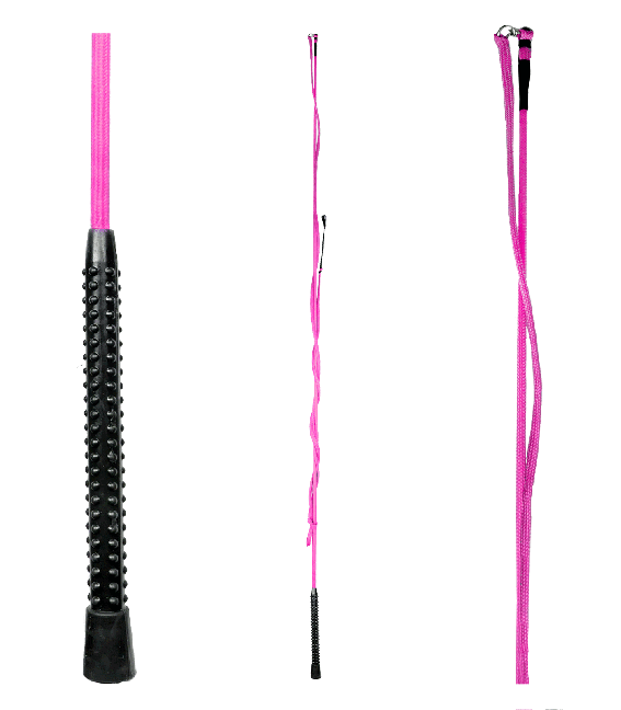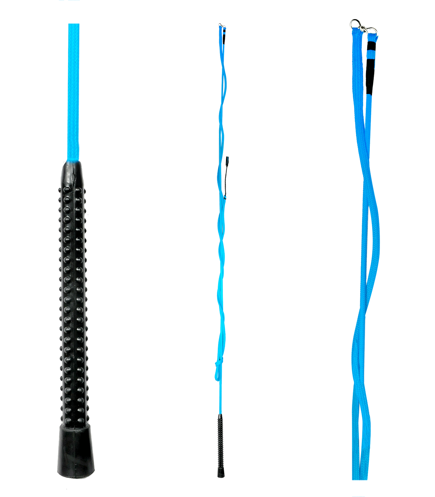 Chambrière en nylon tressé équipée d’une poignée en plastique.