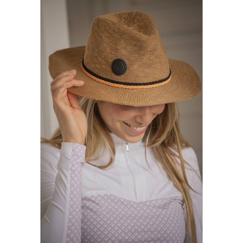 Chapeau d’été Pénélope tricolore, caramel blanc et noir pour protéger du soleil. Il est idéal pour passer du temps en bord de carrière, à l’abri du soleil ou, pourquoi pas, sur la plage cet été … Il s’adapte à de nombreuses tailles de tête grâce à son lien coulissant à l’intérieur. Il est doté d’une pastille ronde en simili cuir sur lequel on trouve le logo Pénélope
