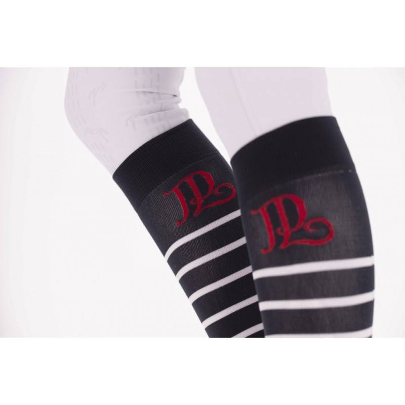 Ce lot de deux paires de chaussettes est composé d’une paire blanche rayée marine et une paire marine rayée blanc. L’ensemble portant le logo PL en rouge. Parfaites pour porter avec un pantalon d’équitation et idéal pour la pratique de l’équitation de loisirs ou en compétition.