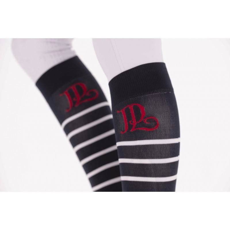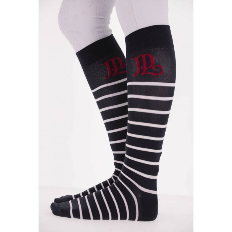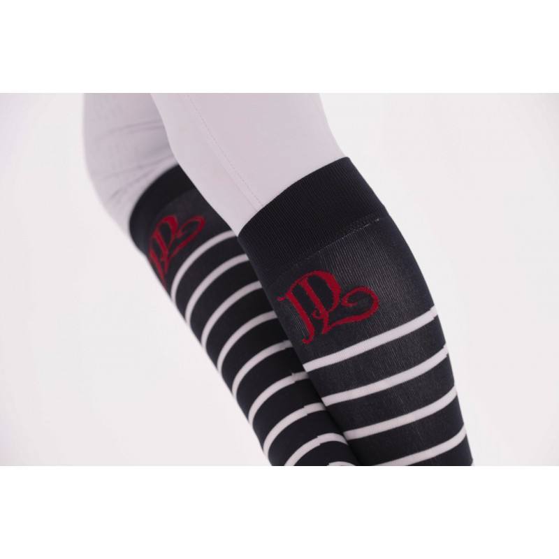 Chaussettes rayée « Duchesse » Pénélope vendues par lot de deux paires issues de la collection Saint James x Pénélope Collections. Ce lot de deux paires de chaussettes est composé d’une paire blanche rayée marine et une paire marine rayée blanc. L’ensemble portant le logo PL en rouge. Parfaites pour porter avec un pantalon d’équitation et idéal pour la pratique de l’équitation de loisirs ou en compétition.