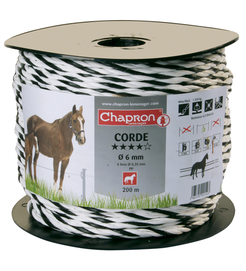Cordelette de clôture noir et blanc Disponible en 200m et 500m