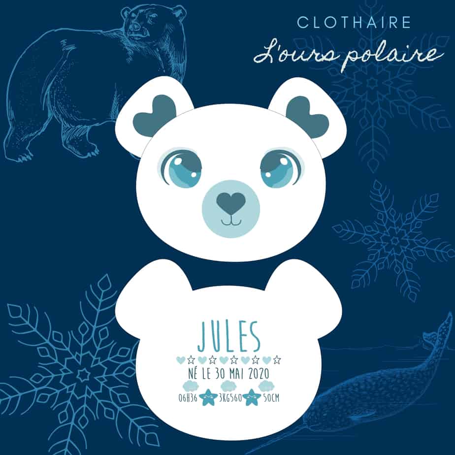 Découvrez le coussin naissance Ours polaire – Clothaire.
