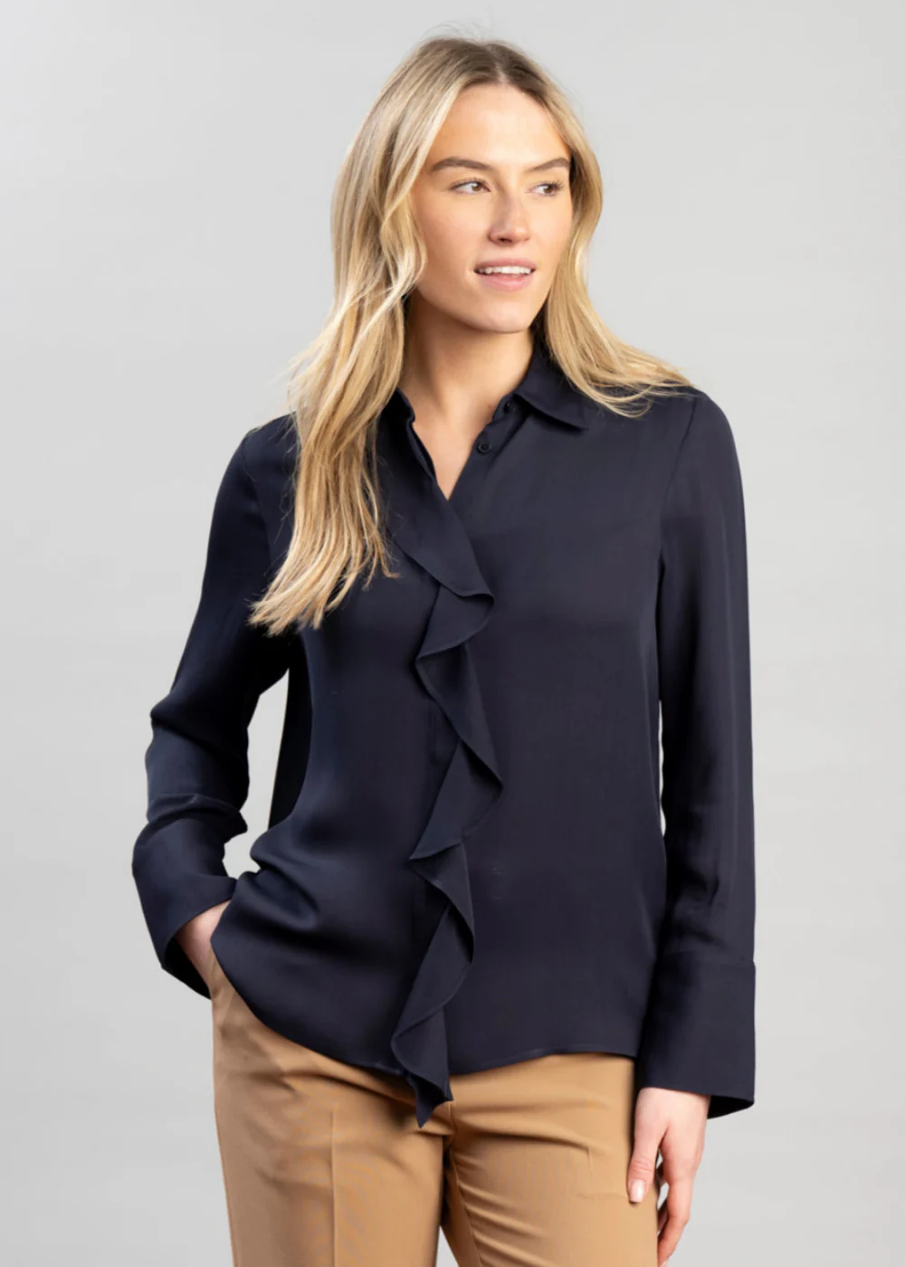 Key Features 100% Viscose Long sleeve Straight cut Ruffle on front Hidden button fastening Straight hem Gant logo discreetly embroidered on wide cuff Care InstructionsPlease refer to care label. Code4300546433