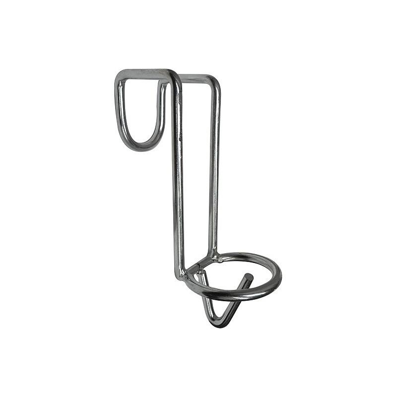 Un crochet porte seau nomade en acier zingué, qui se glisse sur une porte de box, une clôture en bois ou un support adapté dans un camion ou un van.