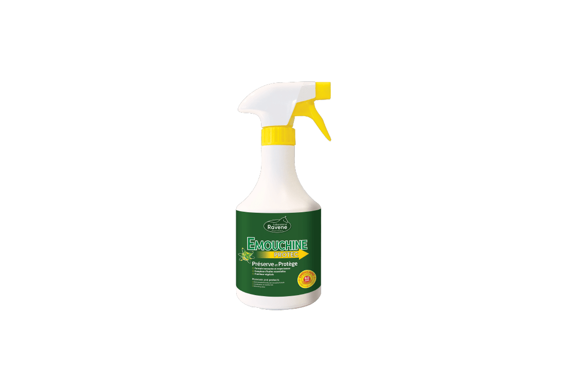 Emouchine Protec est un complexe d’huiles essentielles offrant une solution innovante et respectueuse qui crée une protection nette autour de votre cheval. À base d’huiles essentielles de menthe poivrée d’origine naturelle, d’Eucalyptus citronné et d’Ylang Ylang. Spray de 500Ml