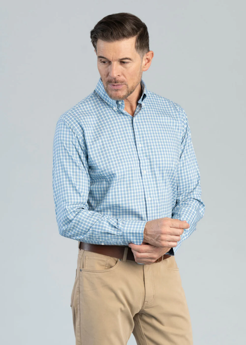Key Features 42% Cotton, 36% Nylon, 17% Lyocell, 5% Spandex Classic fit Button down collar Checked pattern Moisture wicking and easy care properties Machine wash cold with like colours, lay flat to dry CodeMS26W05LTB
