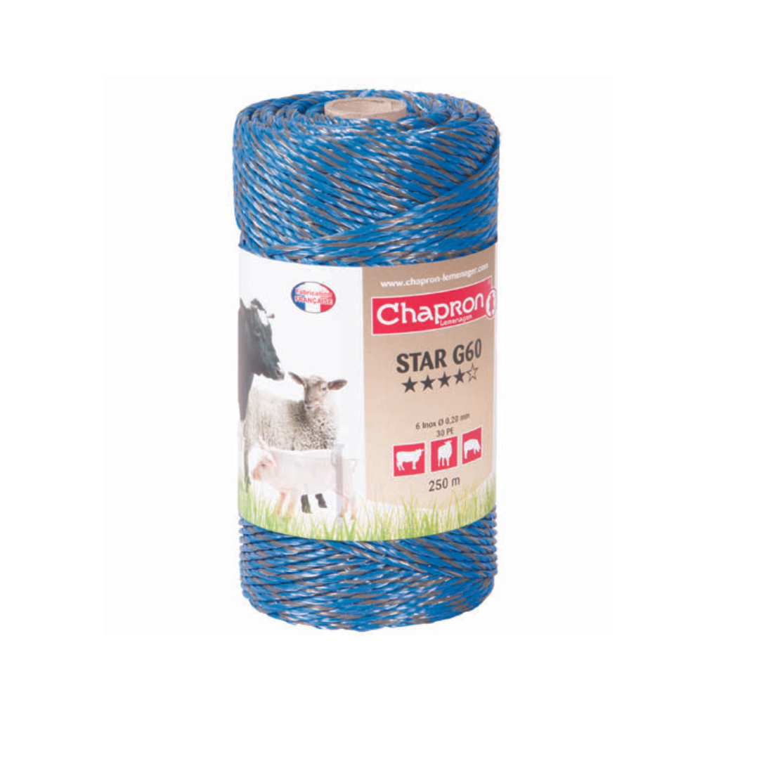 STAR G 60 : cordon retordu pour clôture électrique – Bleu et gris