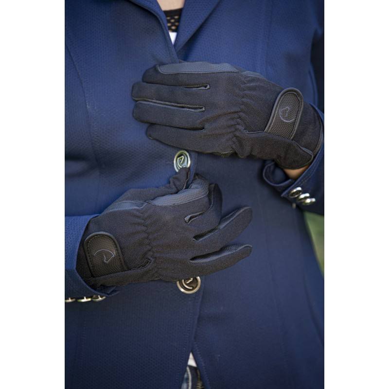 Robustes gants antidérapants avec le dessus de la main élastique. Passages de rênes renforcés. Poignet élastiqué et fermeture par rabat auto-agrippant.