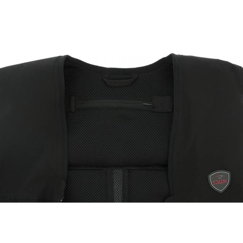 Le gilet airbag SPARK Manège a été conçu d’après un design innovant avec une poche intérieure avec fermeture éclair discrète afin d’y ranger la sangle d’attache et une fermeture à glissière sur le devant. La fixation de lien d’attache est rapide et simplifiée. Côté confort, il est léger, parfaitement découpé au niveau des bras et doté d’un tissu en maille ultra élastique et flexible pour une totale liberté de mouvements et une meilleure respirabilité. Il a été fabriqué dans un tissu en polyester 600D, solide et résistant à l’usure.