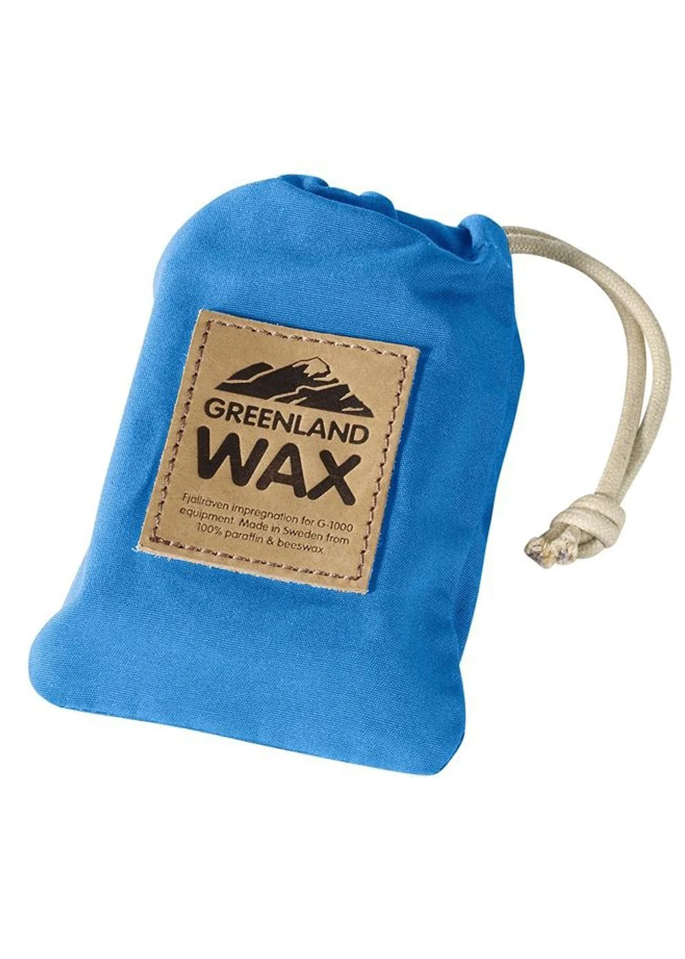 Fjallraven’s Greenland Wax stored in a handy, drawstring bag for safekeeping. The bag is made from the brand’s own durable g-1000 fabric with a leather logo stitched to its front. Water resistant to keep your block of wax safe and dry while out trekking so you can reinforce the functionality of your g-1000 garments at any time. A handy guide to waxing printed inside the bag.