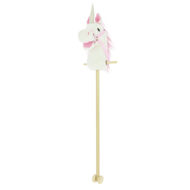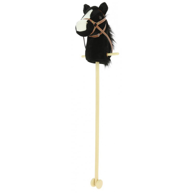 Tête de cheval décorée d’un bridon. Équipé de poignées et d’un manche à roulettes, en bois.