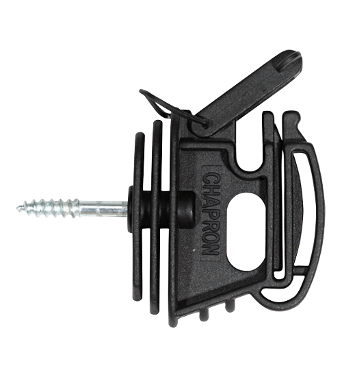 Avec vis autoforeuse. Pour piquet bois spécial ruban jusqu’à 40 mm et corde jusqu’à 6 mm