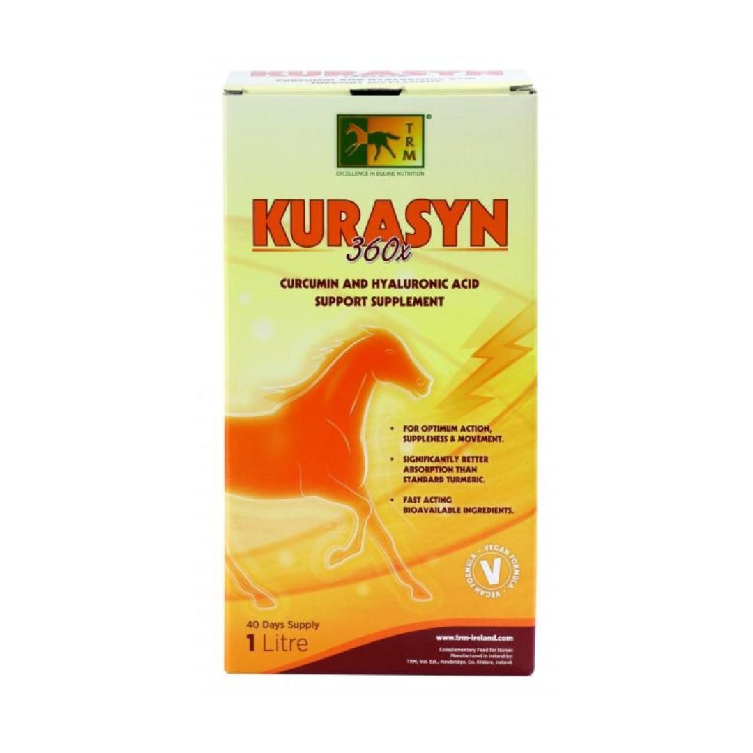 Kurasyn est un aliment complémentaire pour le cheval ou le poney à base de curcumine hautement assimilable combinée à de l’acide hyaluronique.