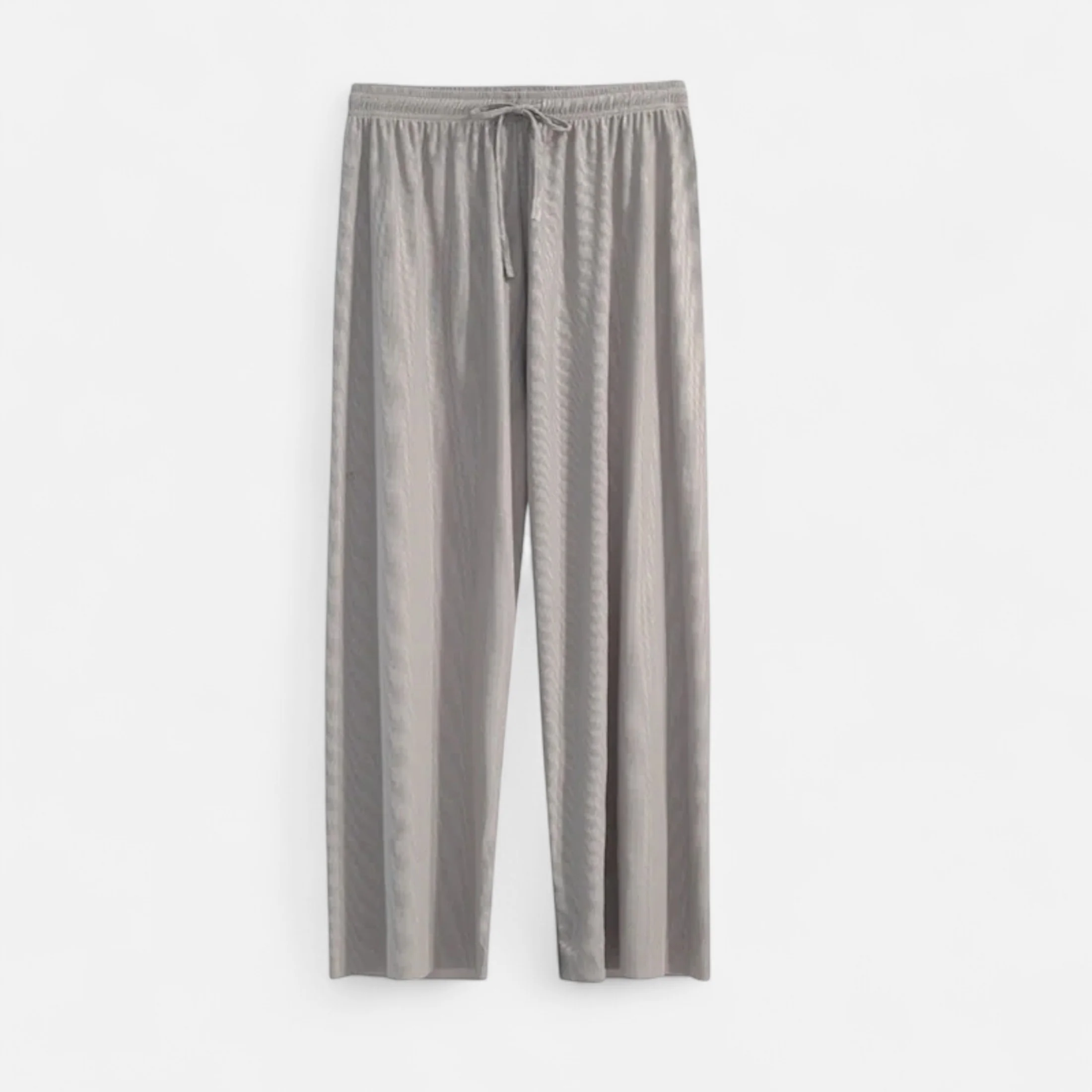 Le tissu polyester au toucher soyeux apporte fraîcheur et légèreté, idéal pour les journées chaudes. Ses plis discrets à l’avant renforcent l’élégance minimaliste du modèle, faisant de ce pantalon un essentiel raffiné qui s’adapte aussi bien à une promenade estivale qu’à un moment chic en terrasse.