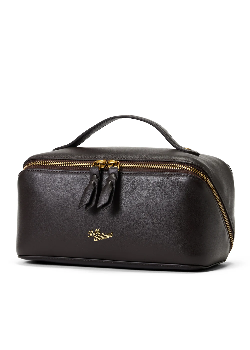 Key Features Full grain leather with a smooth finish Top zip closure and back pocket compartment Internal zip compartment 2 side slip pockets Recycled nylon lining RM William gold deboss Script logo L235mm x H110mm x D110mm Ask us a QuestionIf you would like to order a product in a size or colour not shown […]