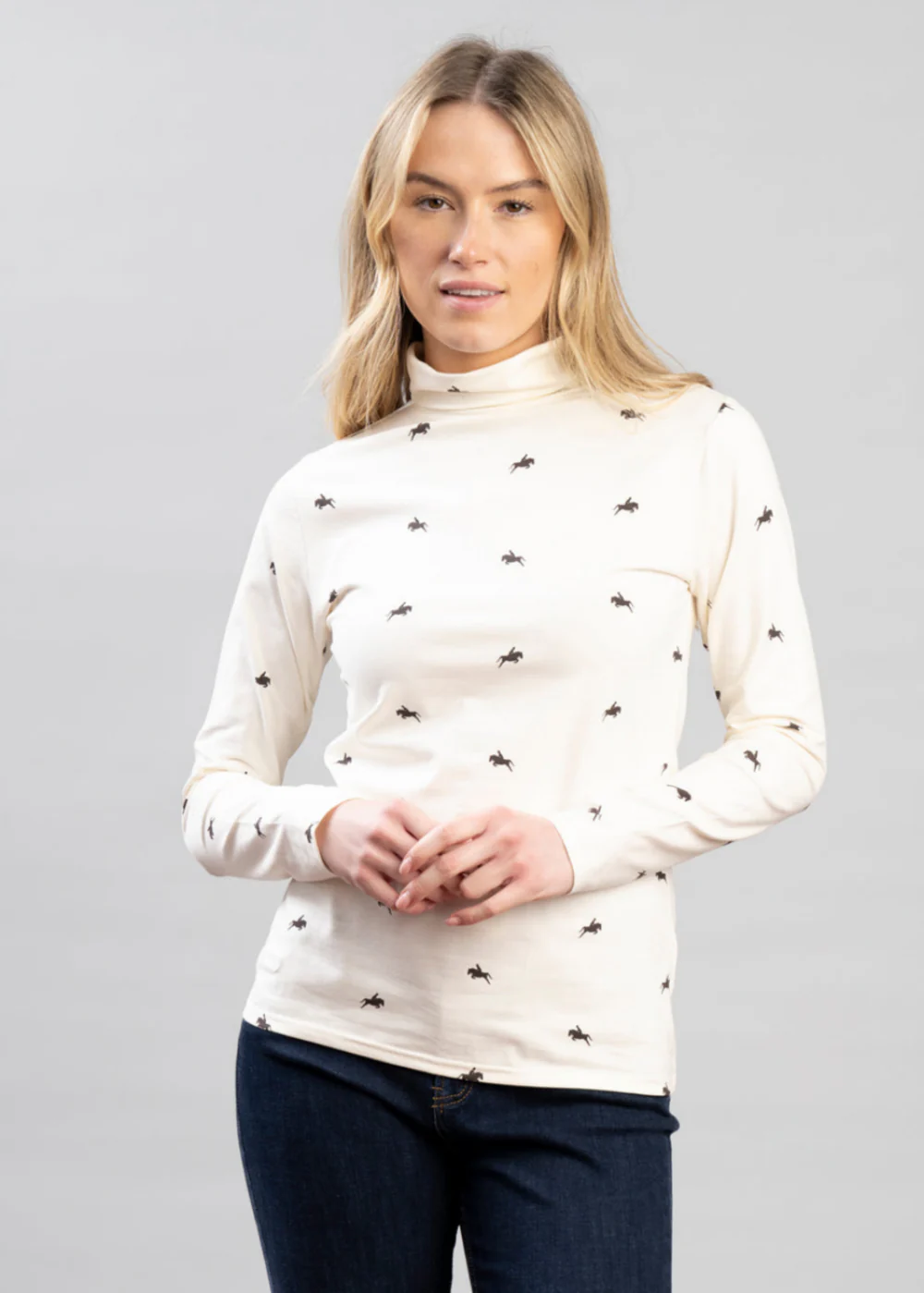 Key Features 97% Cotton / 3% Elastane Stretch jersey fabric Slim Fit Roll neck Long sleeve Silhouette pheasant print Schoffel logo embroidery Machine washable Fit GuidancePlease refer to our Size Guide for more detailed measurements. Product CareMachine washable Code20-2050