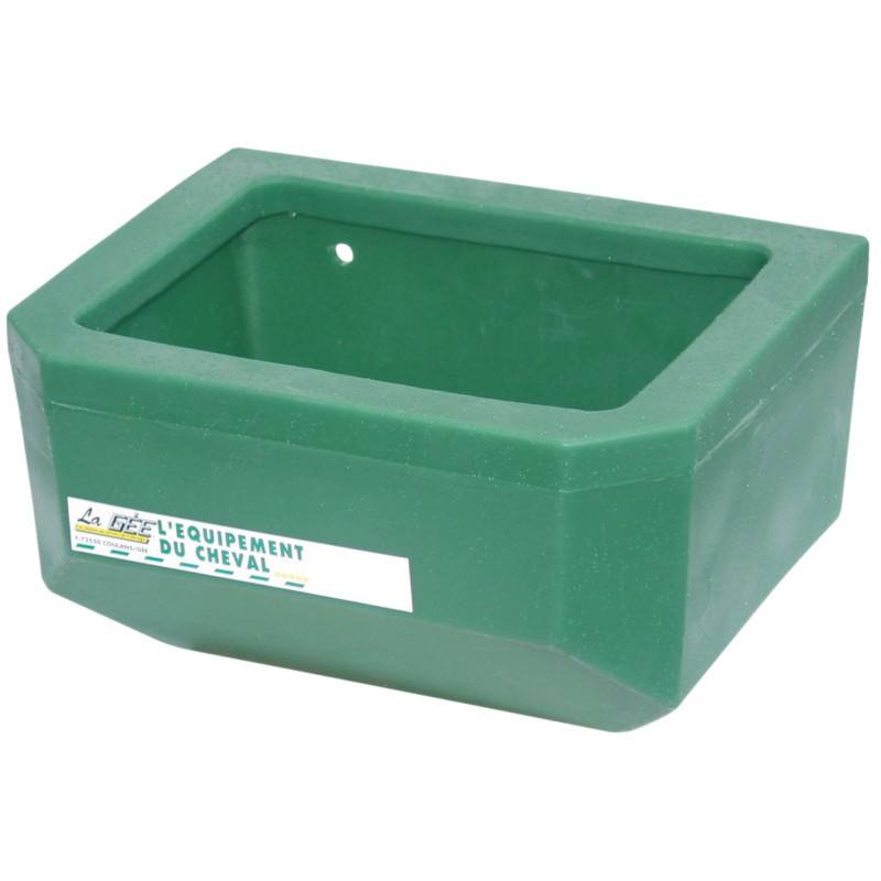 Mangeoire pour poulain ou poney, Contenance 8L En résine de polyéthylène. Rebord anti-gaspillage. Bouchon de vidange à vis pour faciliter le nettoyage. 4 points de fixation. Dimensions: L.0,28 m – l. 0,23 m – P. 0,16 m