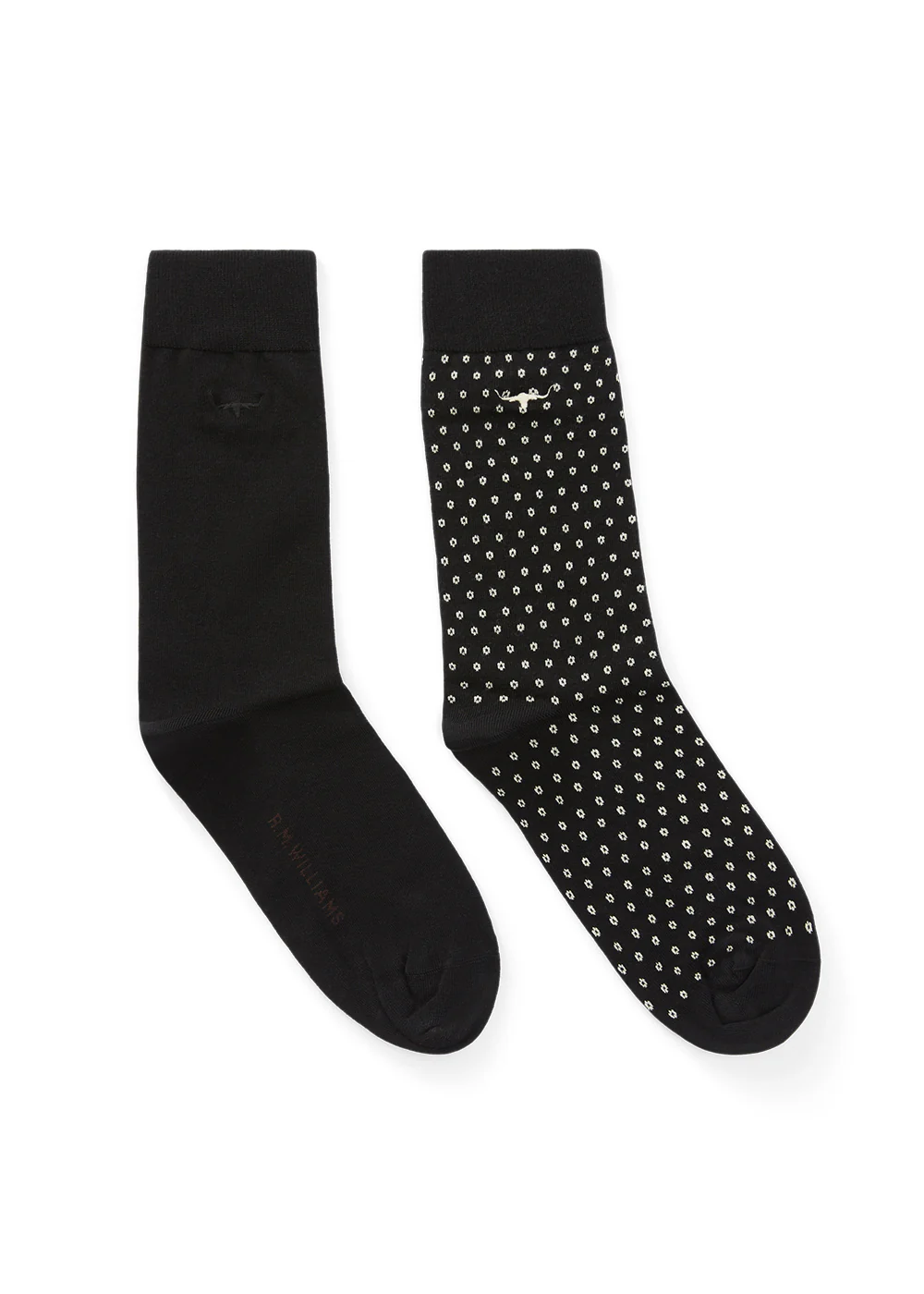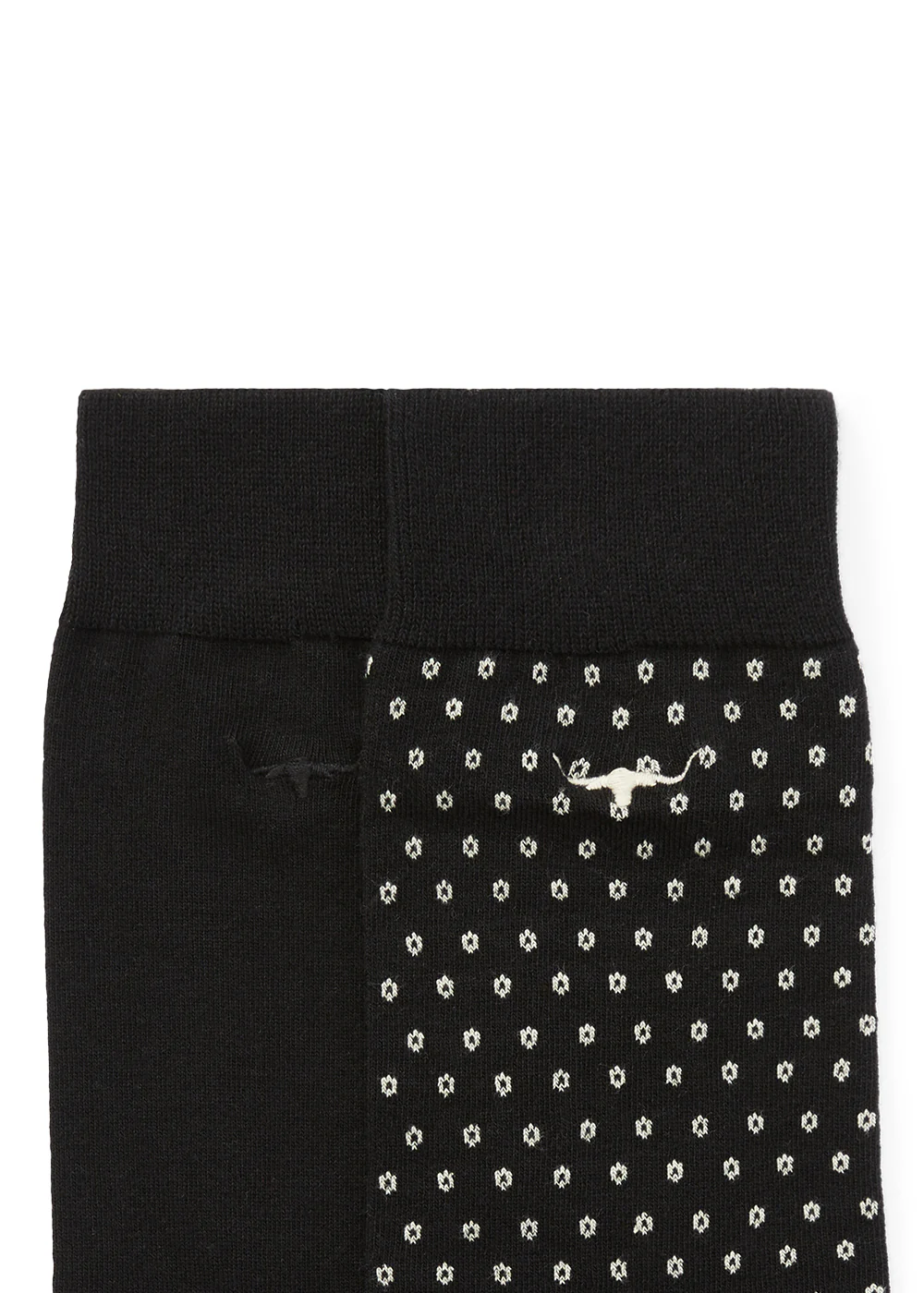 - Embroidered longhorn detail on both socks