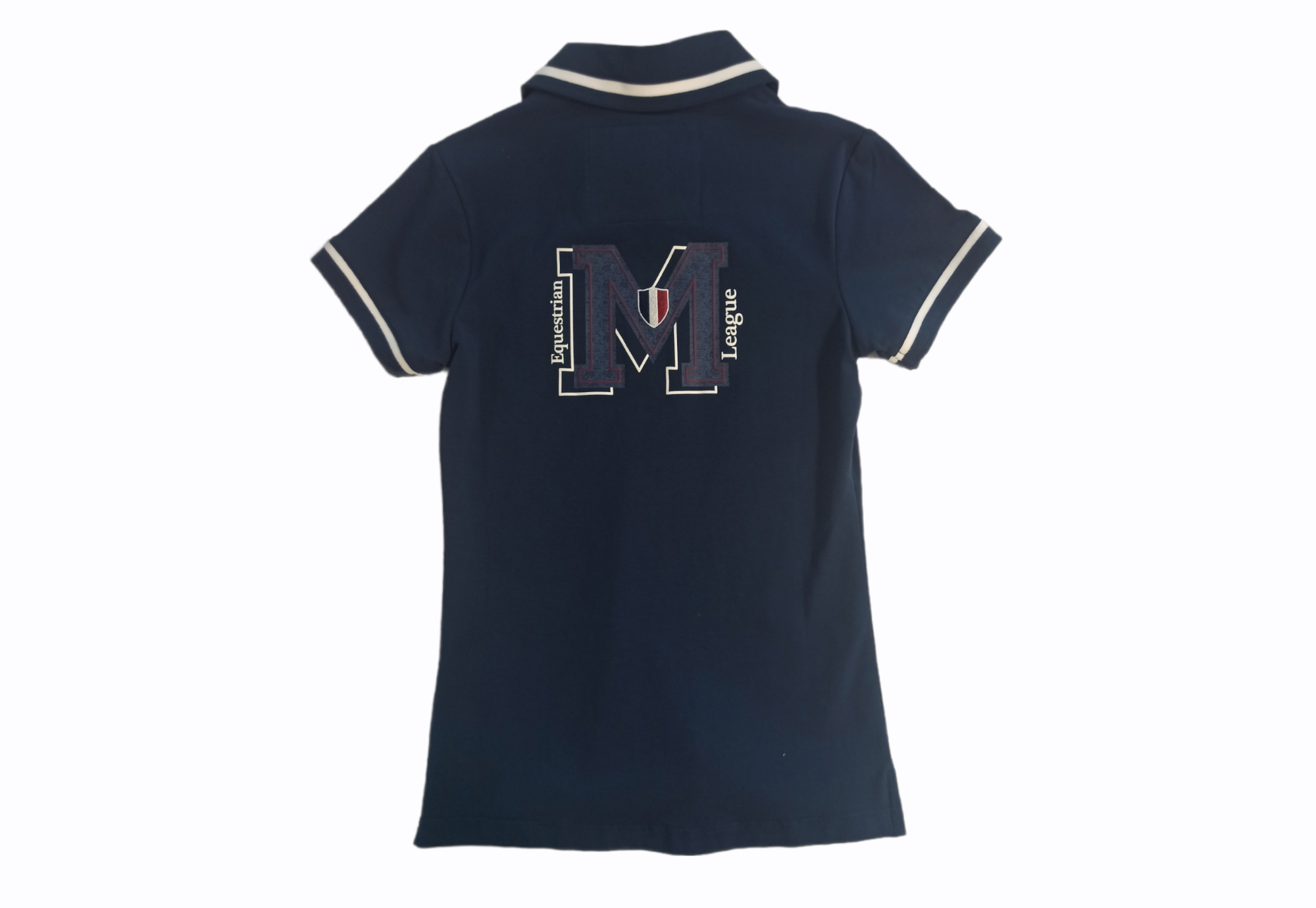 Polo de couleur marine avec petit logo dans le dos et sur le côté.