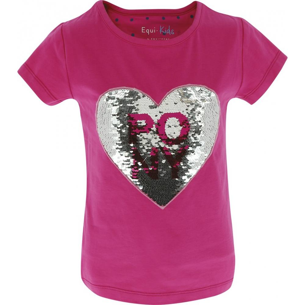 T-shirt en jersey de coton. Coeur en sequins réversibles qui laisse paraître deux marquages différents : Empiècement imprimé pois, logo dans l’encolure.