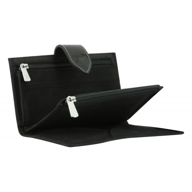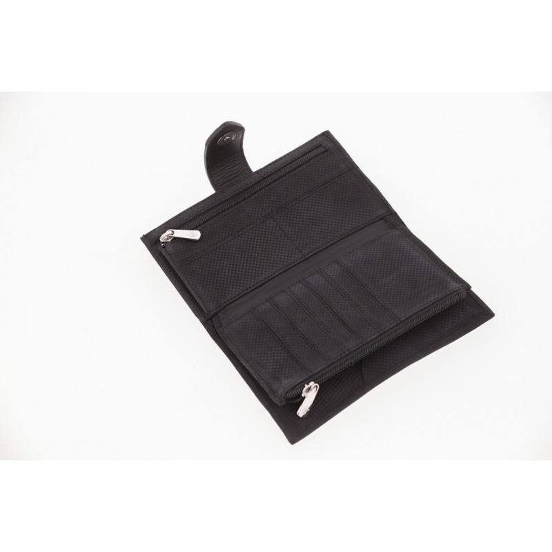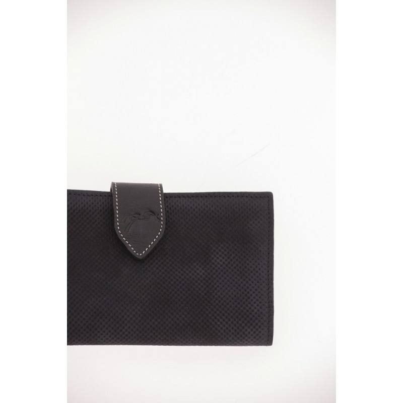Portefeuille Pénélope en cuir micro-perforé noir, idéal pour emmener tous vos papiers et moyens de paiements avec vous.