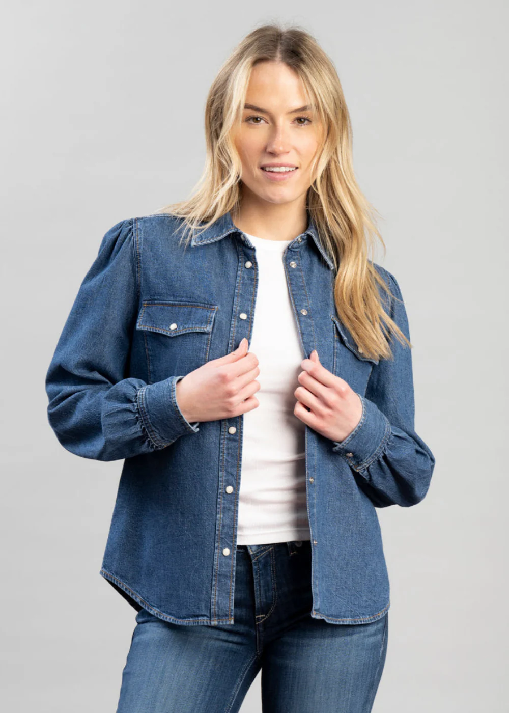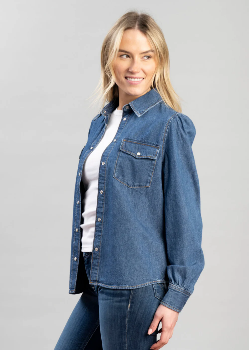 Puff Sleeve Denim Shirt