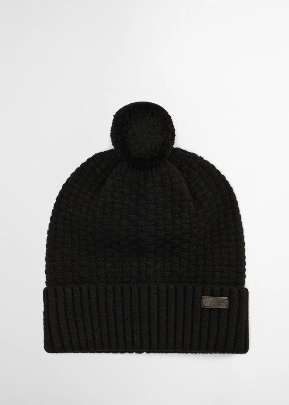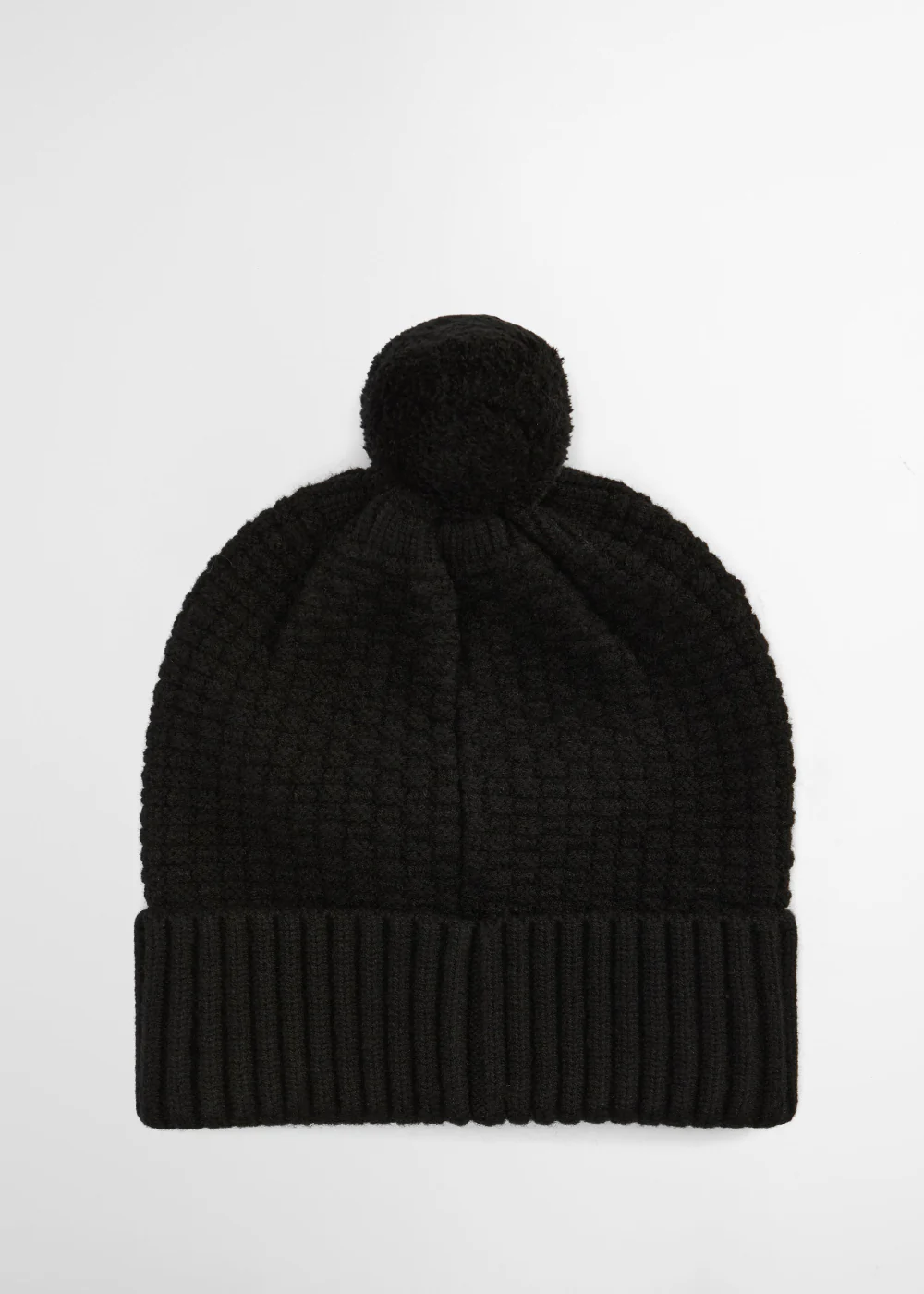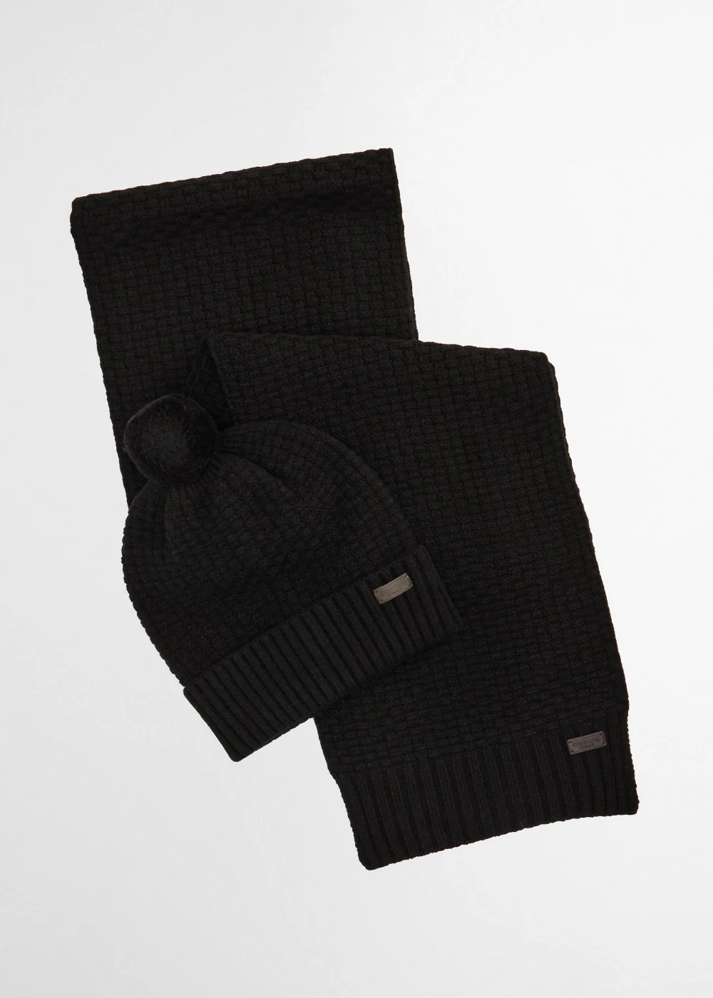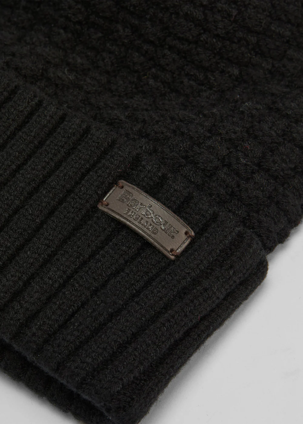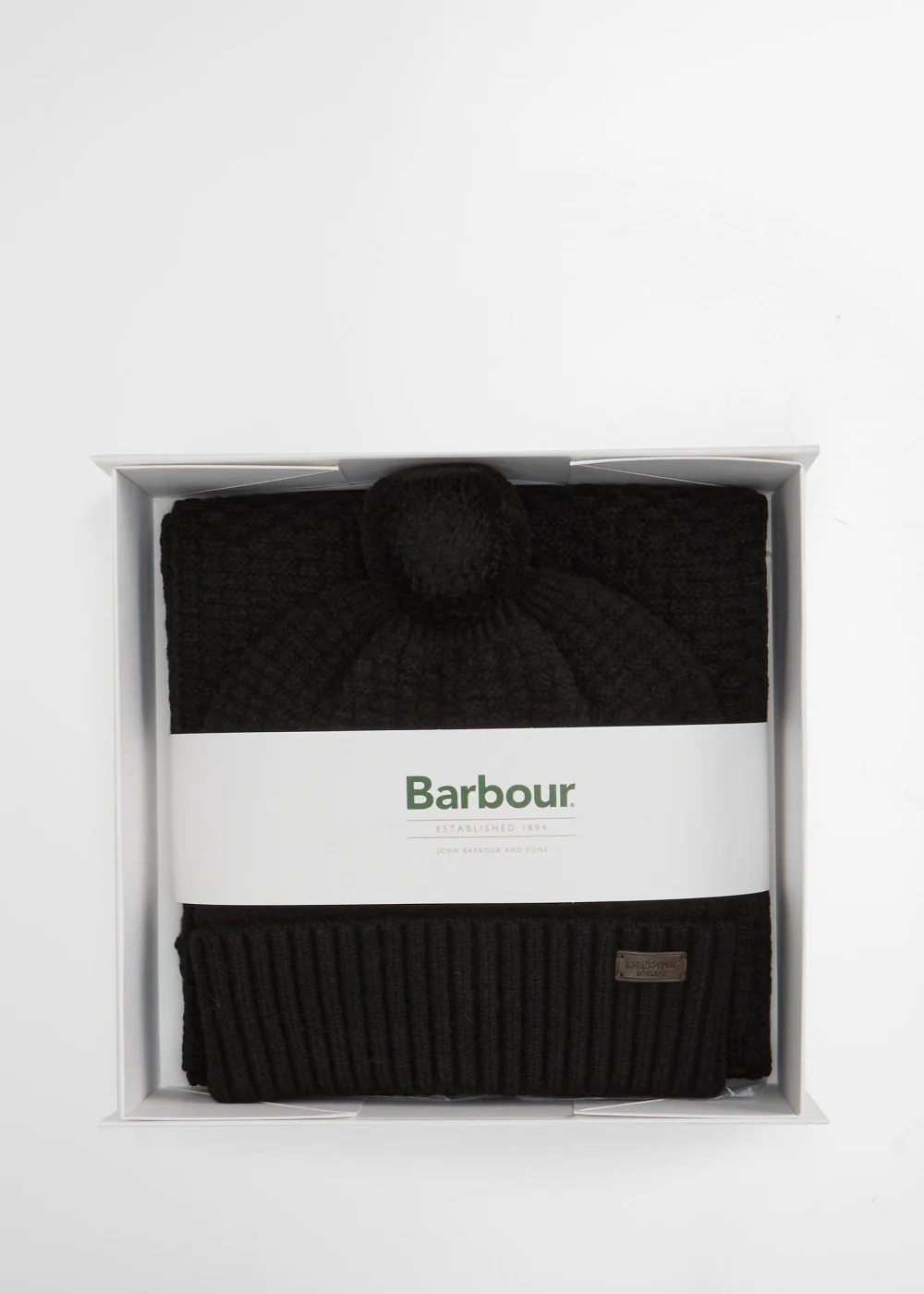 Key Features 58% Polyester ,22% Viscose,20% Polyamide (Nylon) Beanie: Branded Barbour tab to wearer’s left hand side. Scarf: Barbour branded tab to bottom right hand corner. Waffle stitch texture Pom pom beanie Gift box Product CareHand wash CodeMGS0097BK11