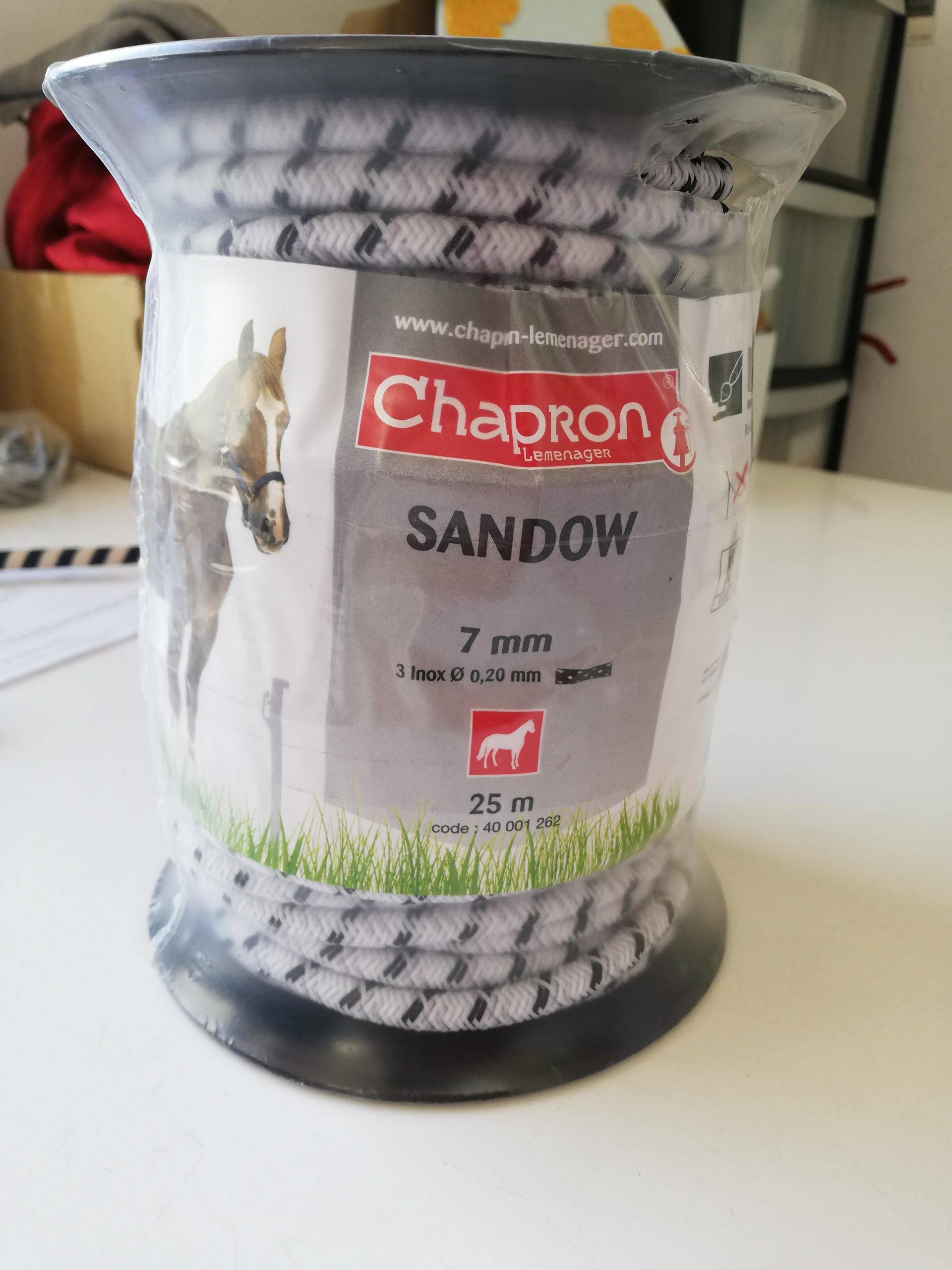 SANDOW Electrifié Sandow électrifié diamètre 7 mm. – Tressé. – 3 conducteurs en inox diamètre 0.20 mm – Parfait pour concenvoir des portes d’accès Longueur 25 m