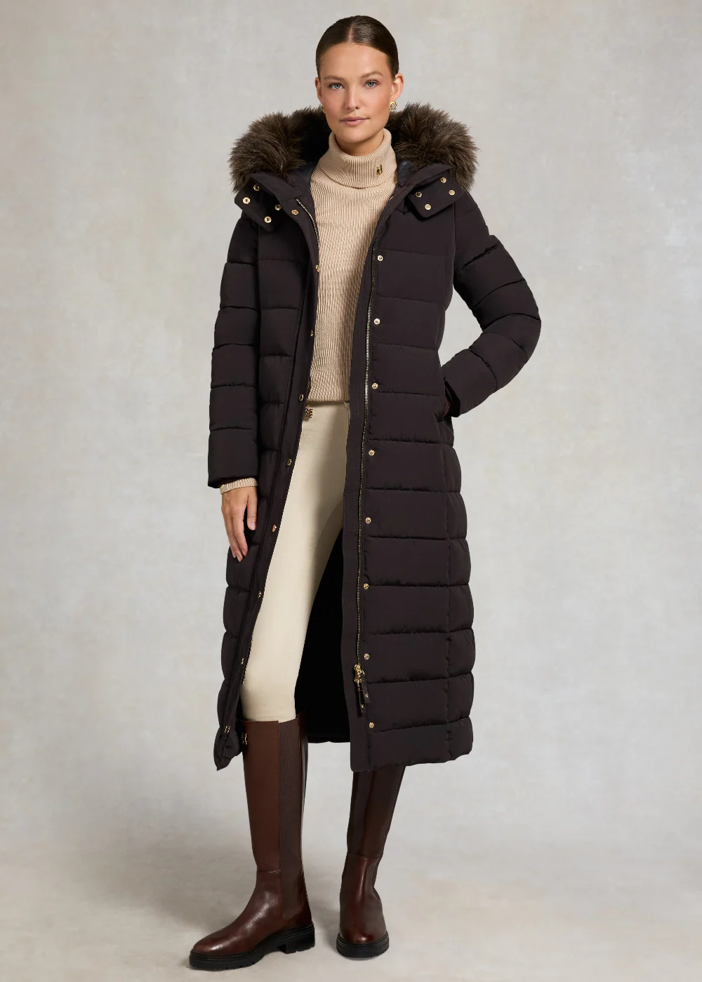 Key Features Body: 100% Polyester Lining: 100% Polyester Filling: 100% Polyester Trim: 47% Modacrylic, 46% Acrylic, 7% Polyester Cuff: 85% Nylon, 15% Elastane Slim fit Long length Eco friendly fill Detachable faux fur trim hood Storm cuffs High build tonal embroidery Gold HC hardware and stirrup details Princess seams Eco friendly fill Why Customer love […]