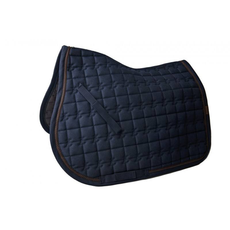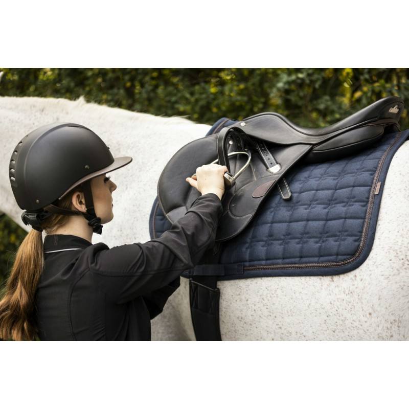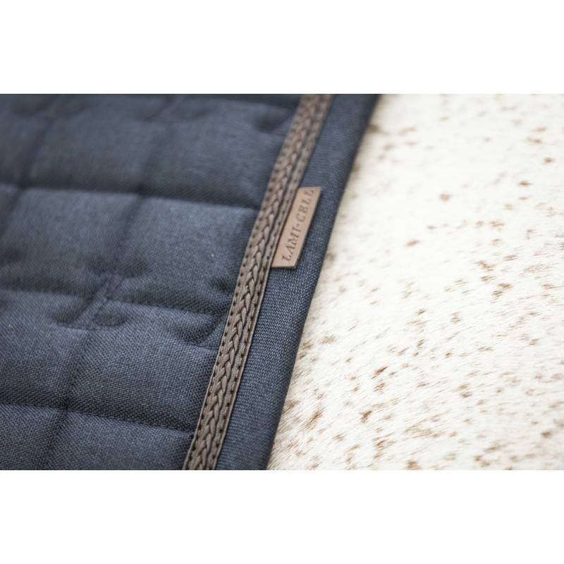 Tapis de selle en charbon de bambou. Finition galon en cuir.