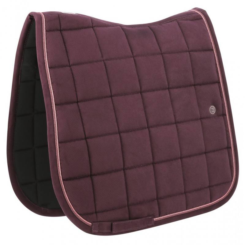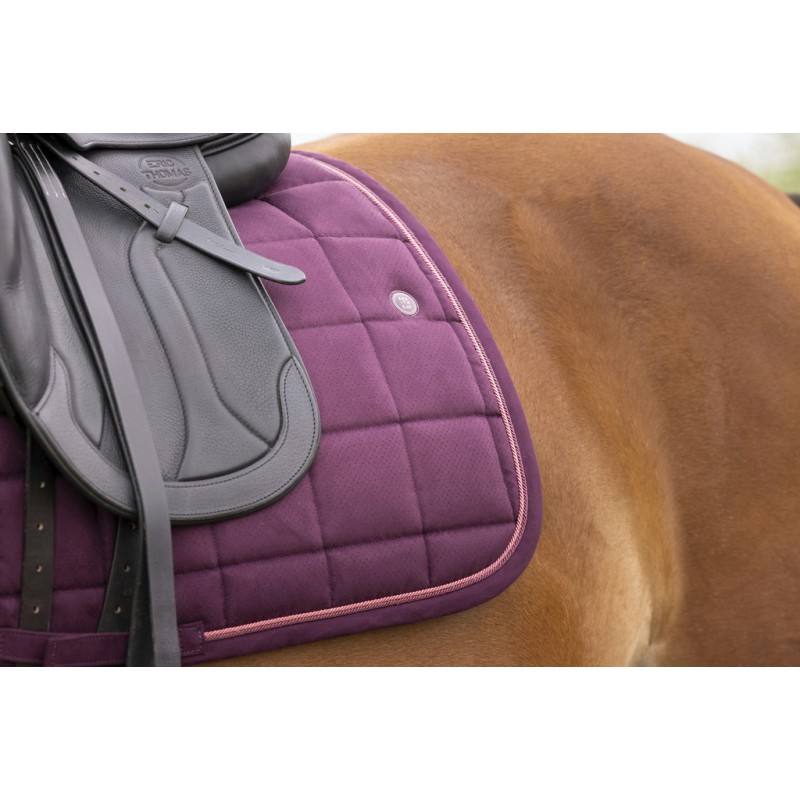 Tapis de selle en tissu effet « peau de pêche » avec motif points découpés au laser.